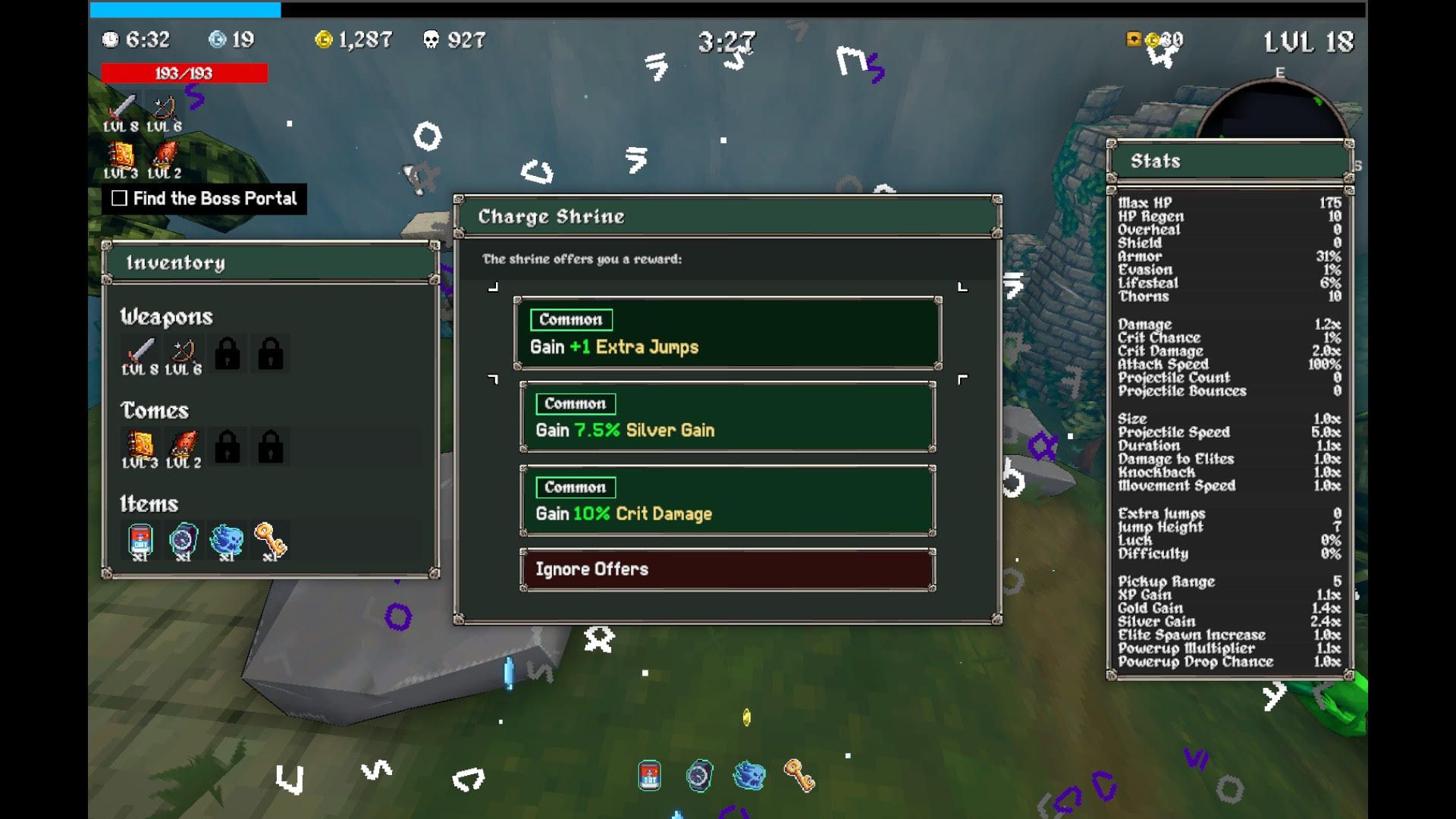 Luck | Increases chances of rarer tomes, drops, and upgrades appearing. The higher the Luck, the better your overall loot quality. |