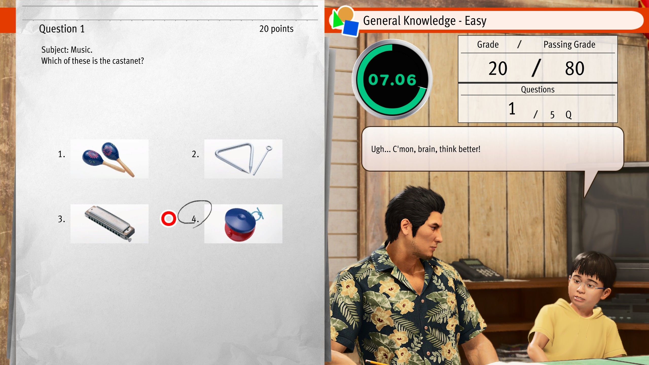 The homework minigame lets kids strengthen their relationship with Kiryu by completing assignments covering various subjects. You can find it in the first room on the right when you enter the Morning Glory Orphanage.