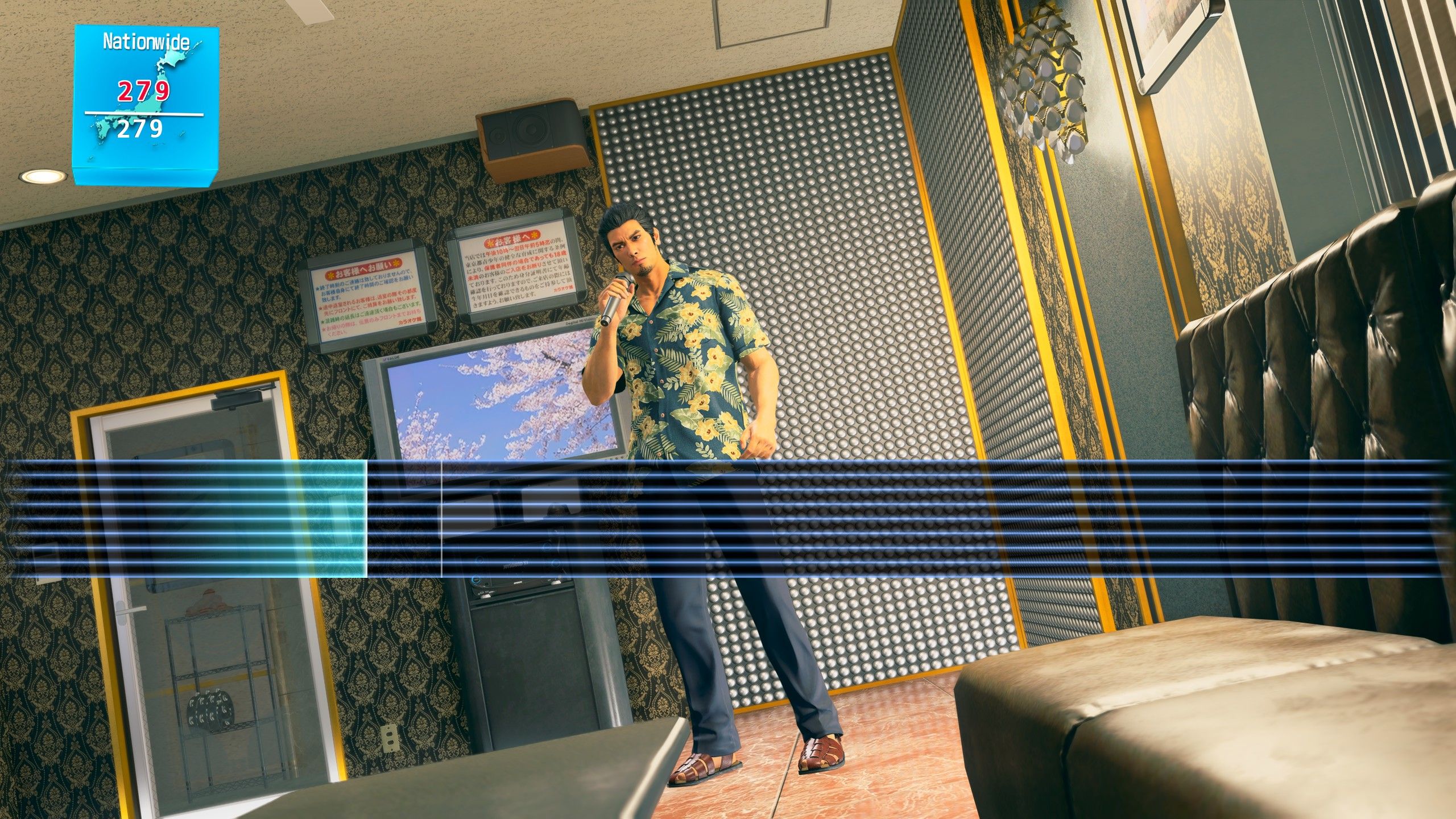 Head north on N Kubochi Rd. to find the Karokekan. It costs 1,000 Yen per person to play, and you’ll get to try seven songs, aiming for the highest score by hitting the controller buttons in time with the music. This is where you can unlock the chance for Kiryu to sing Baka Mitai!