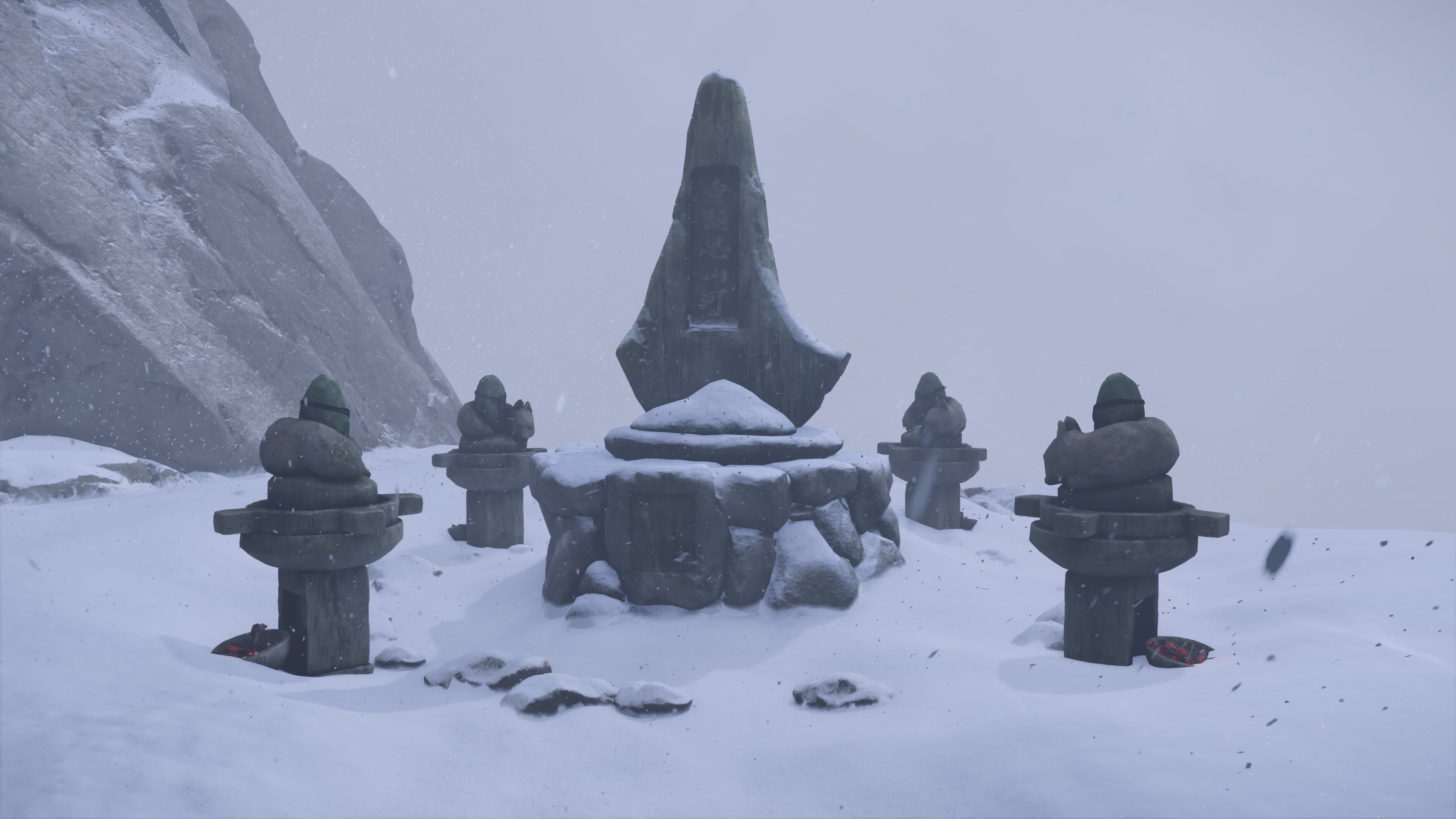 To solve this puzzle, you need to turn each of the fox statues to face Mount Yotei. Don’t worry, the statues don’t affect each other – you can rotate each one independently. Find each fox statue located north, east, south, and west of the altar, and keep interacting with it until it’s pointing west, towards Mount Yotei. Once they’re all facing the right way, the altar will open and you’ll be able to claim the treasure inside.