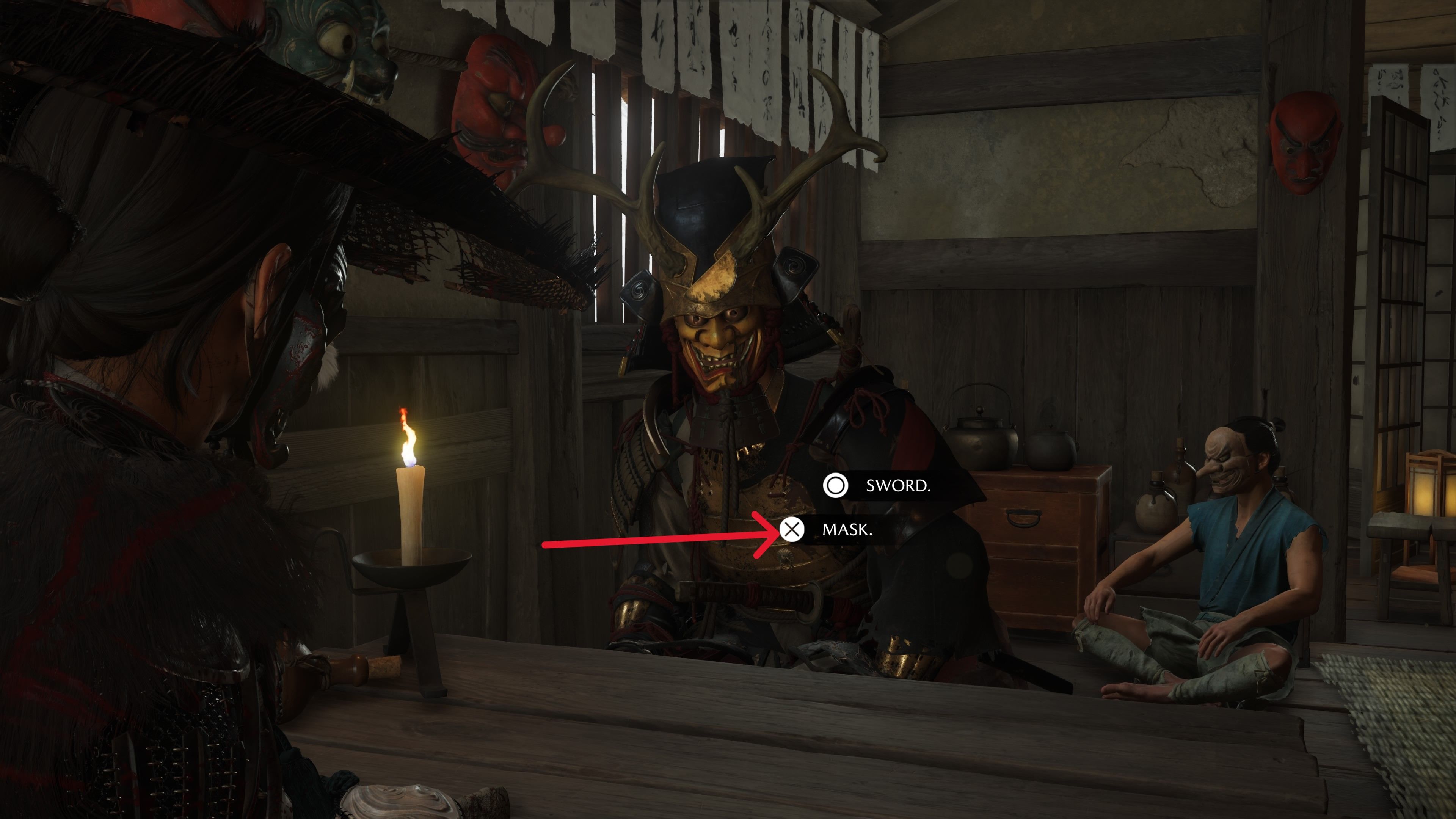 The Oni’s Breath Inn can be found in the eastern part of the Ishikari Plain, inside the Urara Forest. When you get to the front door, a bouncer will stop you and ask you to wear a mask. You can put one on by pressing the Options Button on your controller and going to the Gear menu, where you can choose a face covering. If you don’t have an acceptable mask, you can get one nearby for free. Just to the right of the inn’s entrance is a Bamboo Strike activity. If you complete it, the people watching will give you the Shattered Demon Mask, which you can wear to get inside.