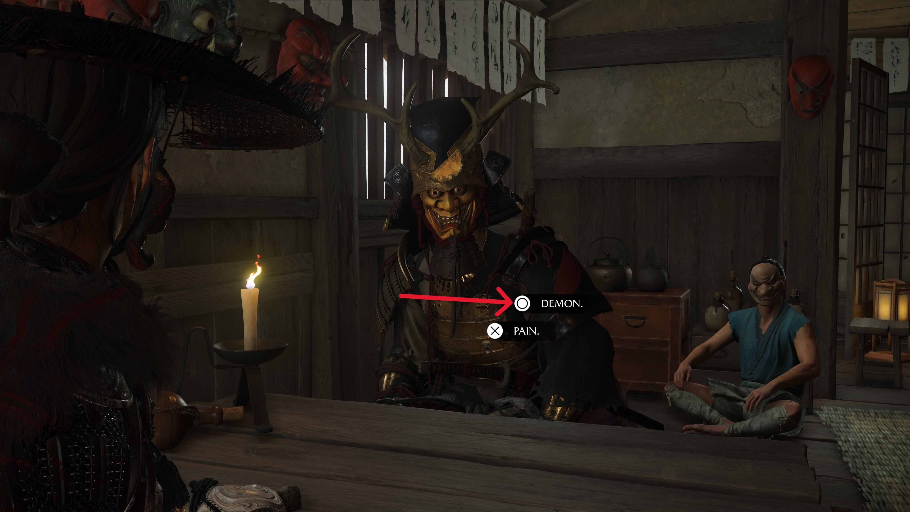 Once you’ve solved all the riddles, you might assume you’re done here, but the raider will actually identify you as the Onryo. This triggers a duel with the raider outside, followed by a larger fight against all the remaining raiders, so make sure you’re ready to fight. After defeating them, the Oni’s Breath Inn will become available as a location you can fast travel to.