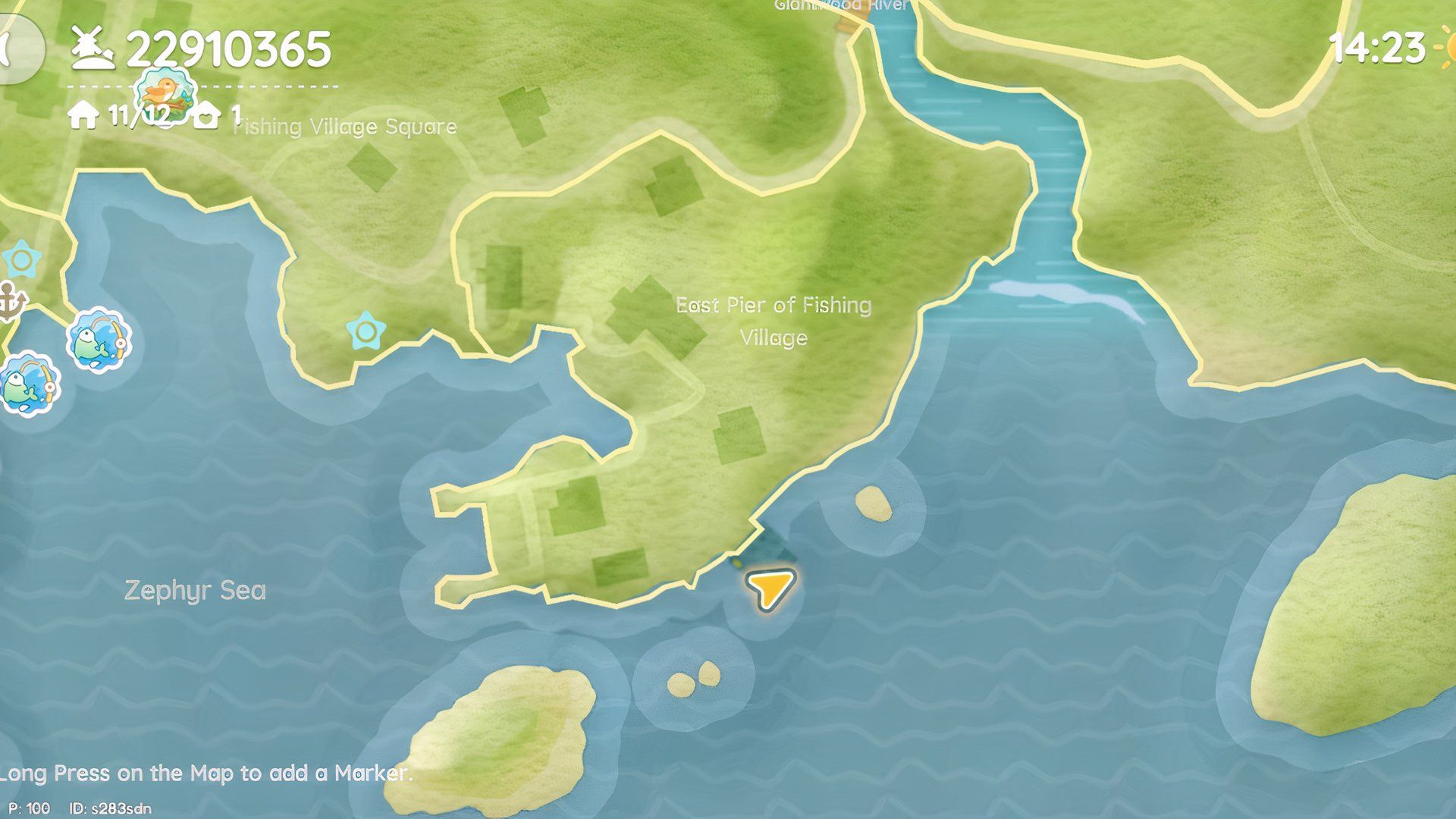 Fishing Village Square (South) | Go south of Fishing Village Square and cross the river. This one is hidden inside a blue boat sticking out of the water. |