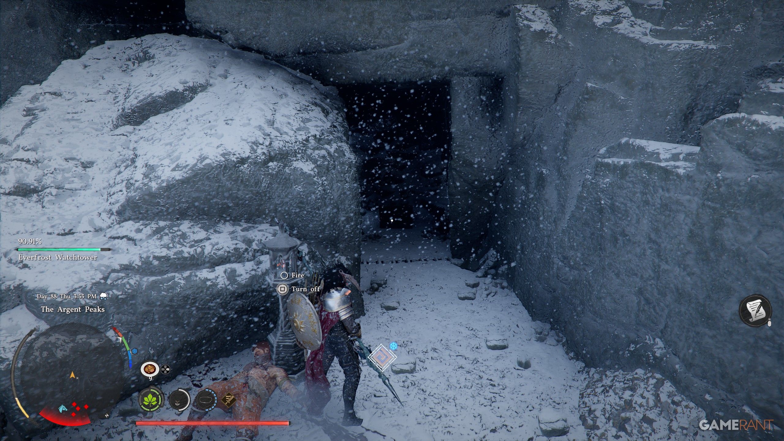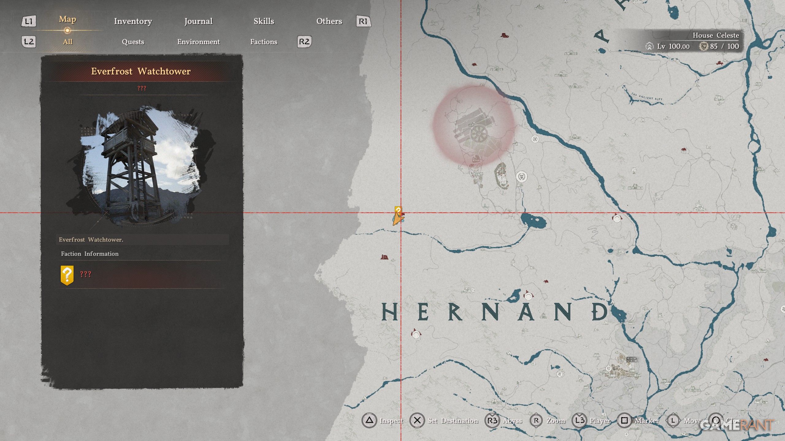 - Head north of the “H” and Hoenmark Ruins to find the Everfrost Watchtower.