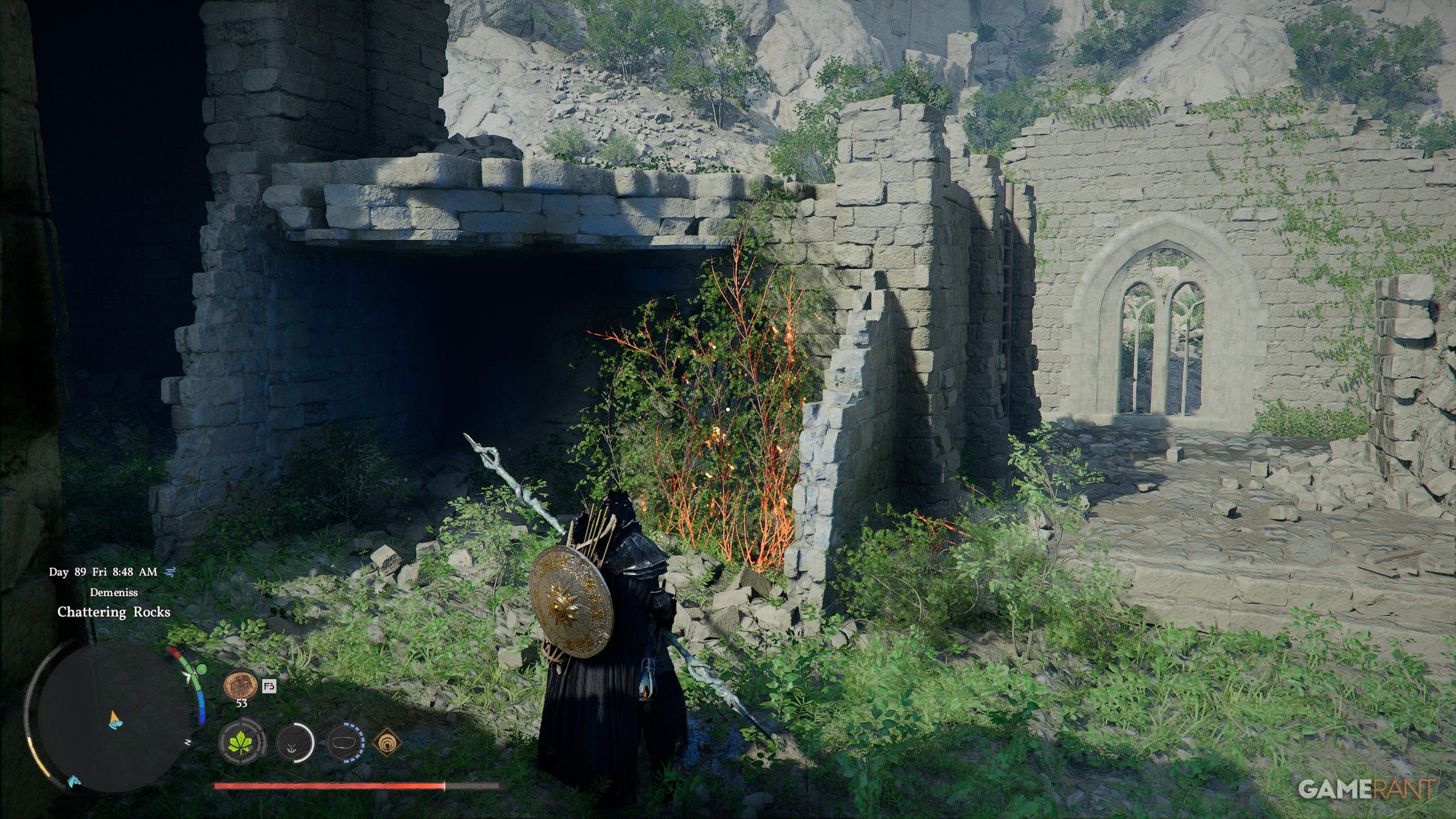 - Inside Chattering Rocks, you’ll find a wall covered in vines, which can be burned down with Blinding Flash (L1+R1+L1).