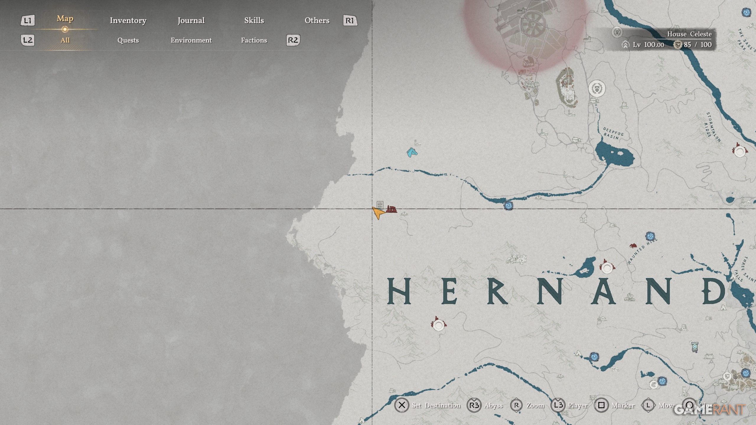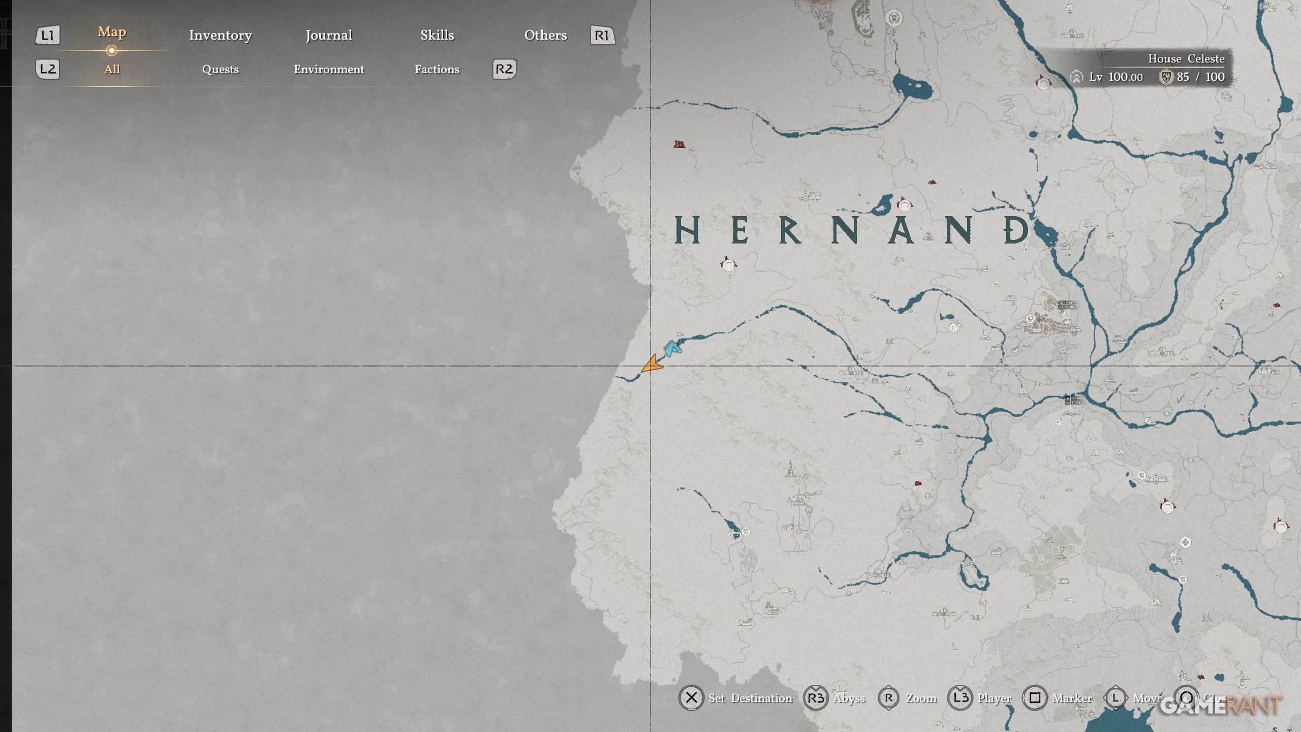 - Follow the river underneath “Hernand” on the map, and then take a left up the rocky mountains.