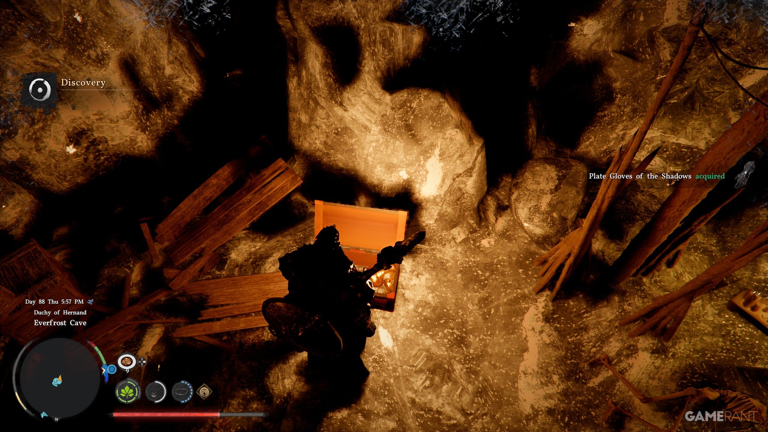 - Inside the room, there’s a Treasure Chest that contains the Frostcursed Plate Helm.