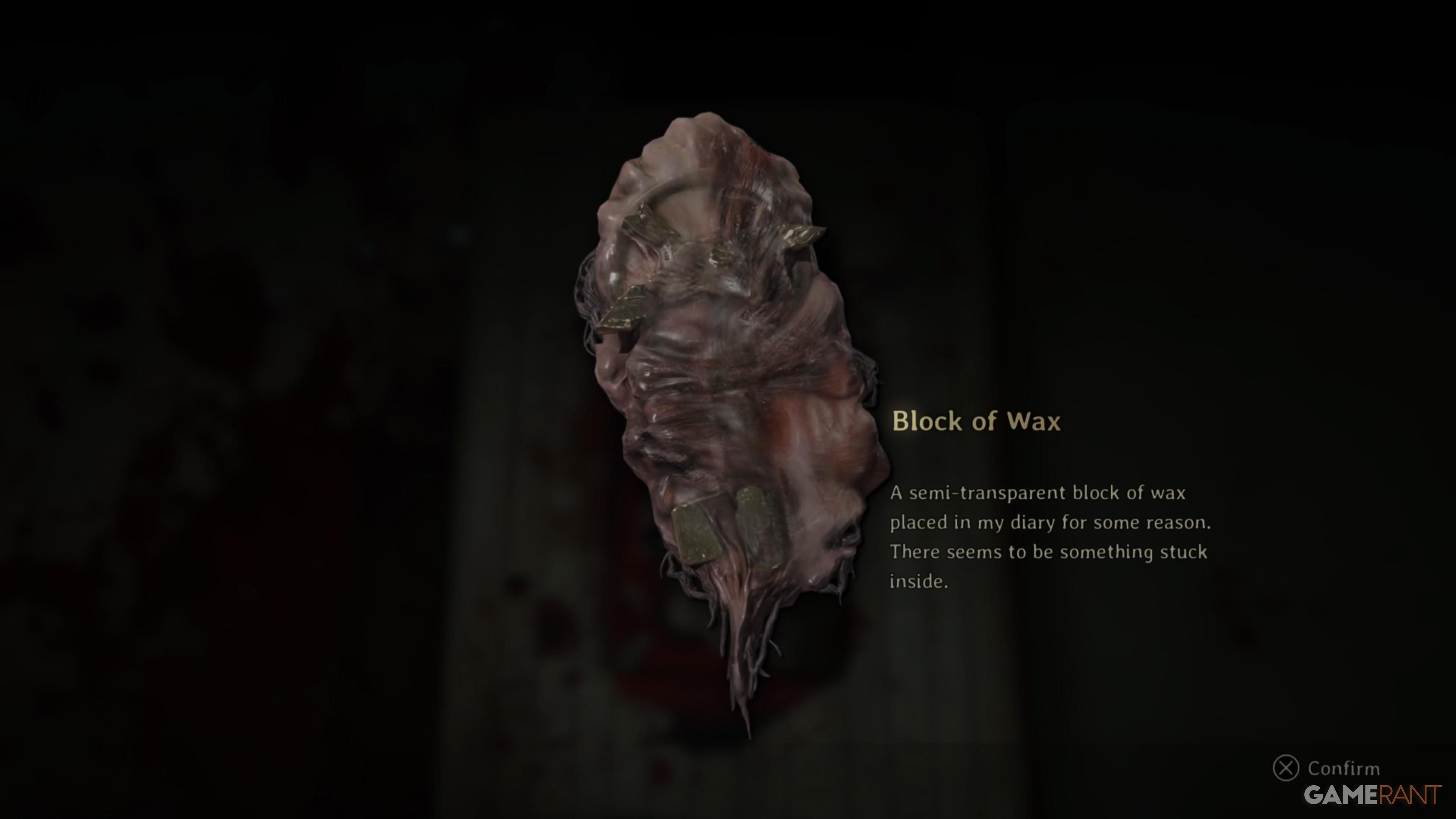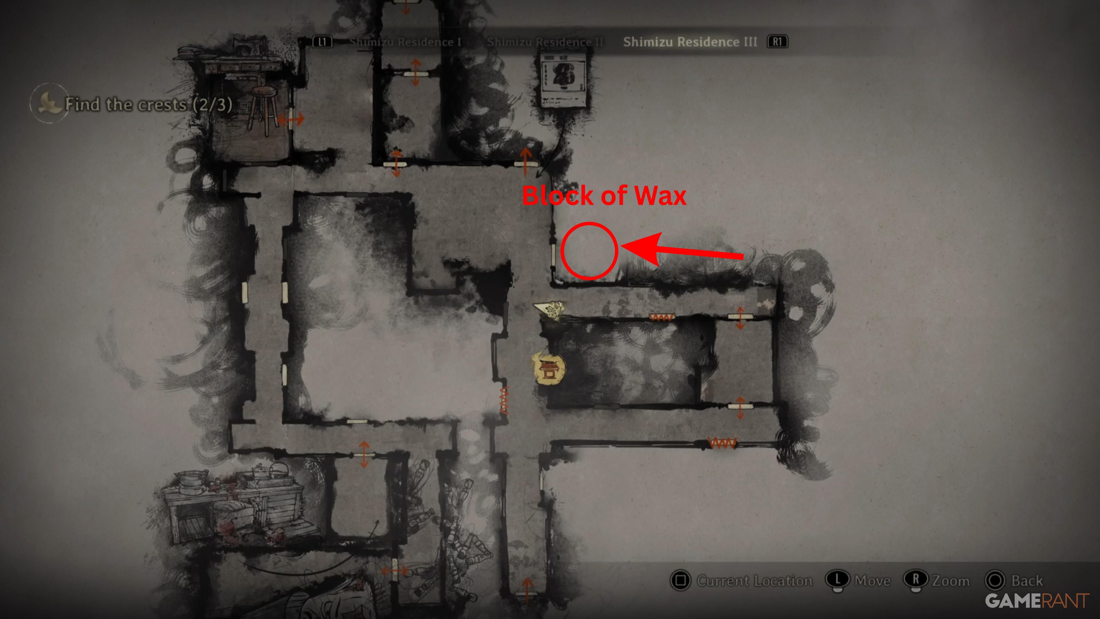 In the Shimizu Residence III, the Hokora is located in a familiar spot. After saving your progress, go right and interact with the door immediately after visiting the Hokora. You’ll find a shelf you can examine to discover your diary, which contains a Block of Wax. Take the wax and then head down the left hallway.