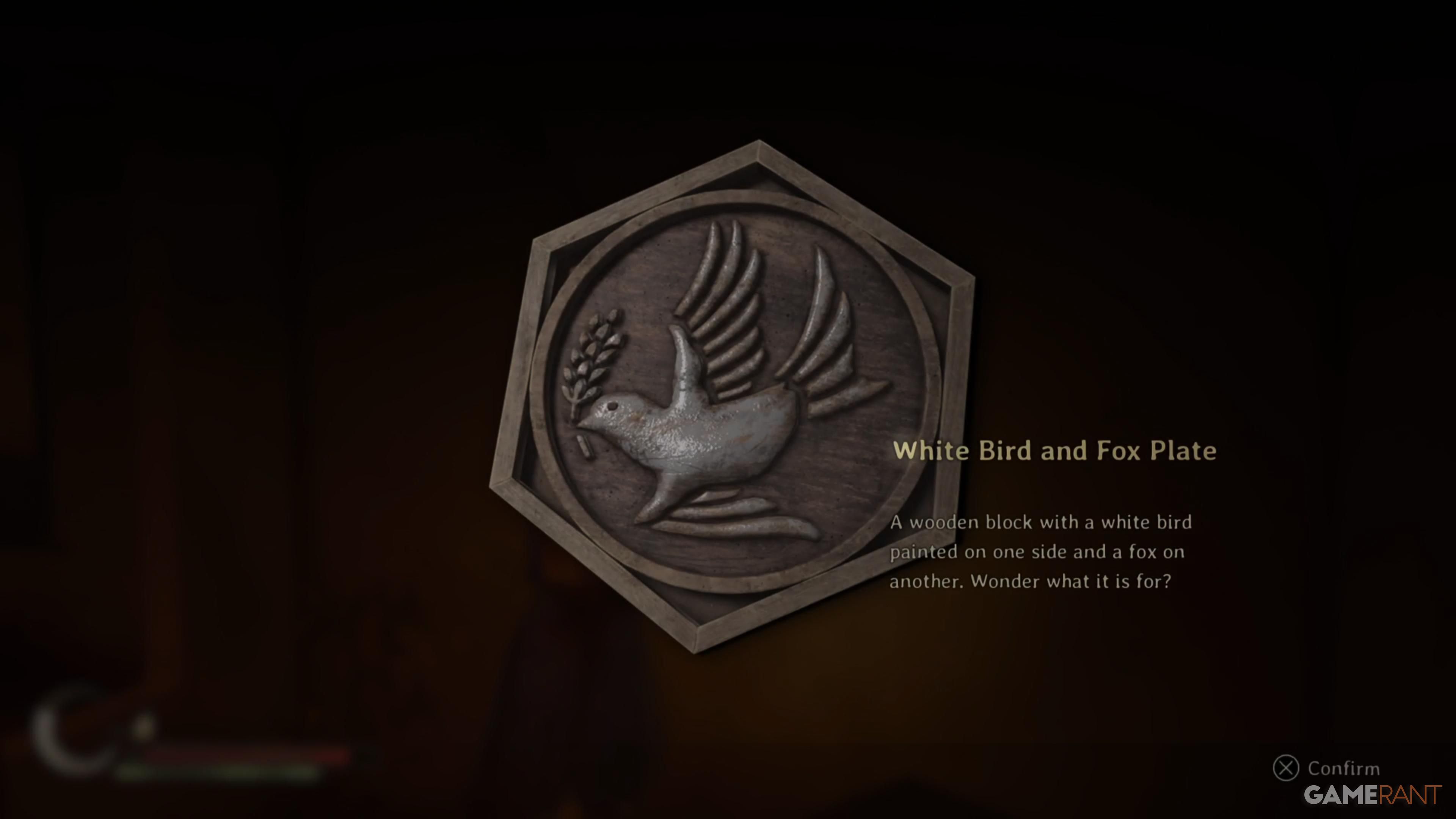 Okay, so this room has a bunch of ways to get in. To solve the puzzle, you need to put the Picture Frame on the blank space and then turn it – that’ll make the family photo fall and show a crest! Once you do that, a really annoying blind enemy will pop up. Seriously, watch out for their grabs, because they’ll drain your Sanity *and* your health. After you deal with that enemy, you can finally grab the White Bird and Fox Plate.