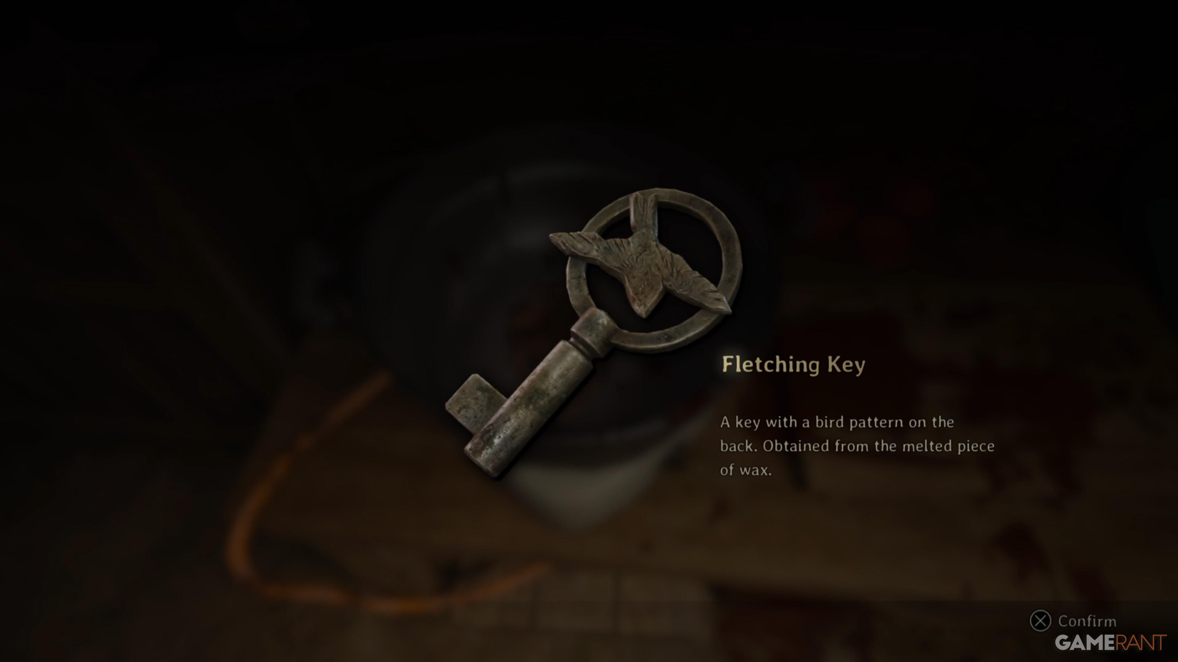With the second crest in hand and the puzzle solved, the area has transformed, and you’ll now encounter more enemies on the floors above. Head down to the kitchen – it’s on the first floor, in the bottom left corner. There, you can attach the propane tube and use the heat to melt the Block of Wax, uncovering the Fletching Key.