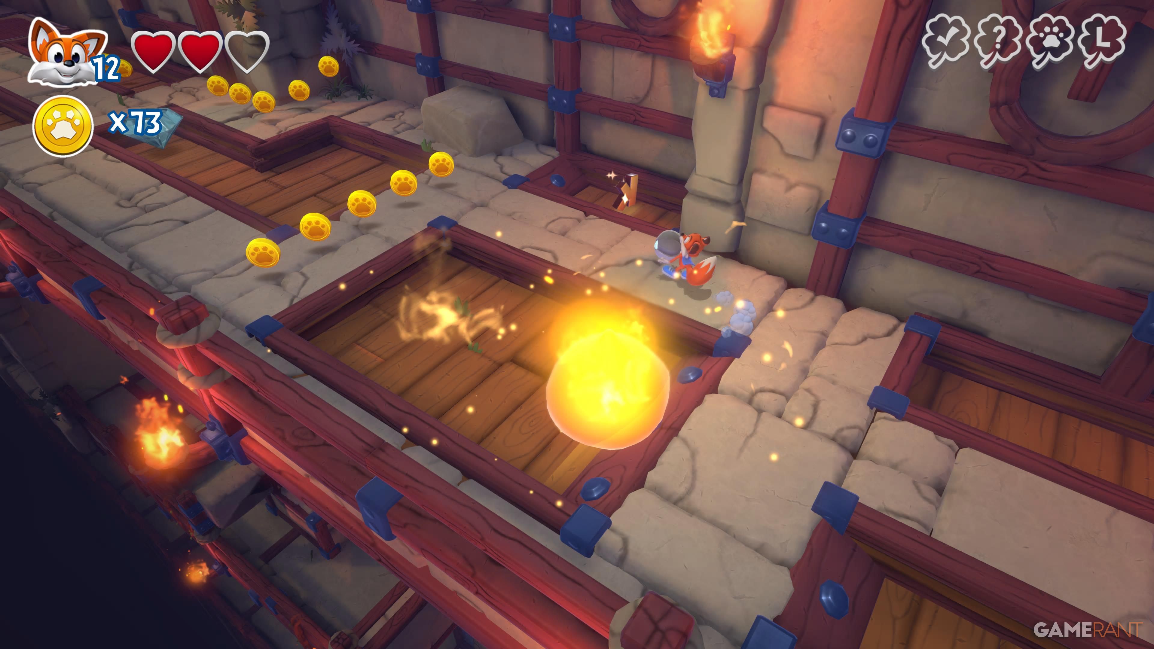 On the top side, after climbing the tower with the moving fires, take the right path. Burrow to avoid taking damage from the fire and use the jump pad to find the foxhole. |