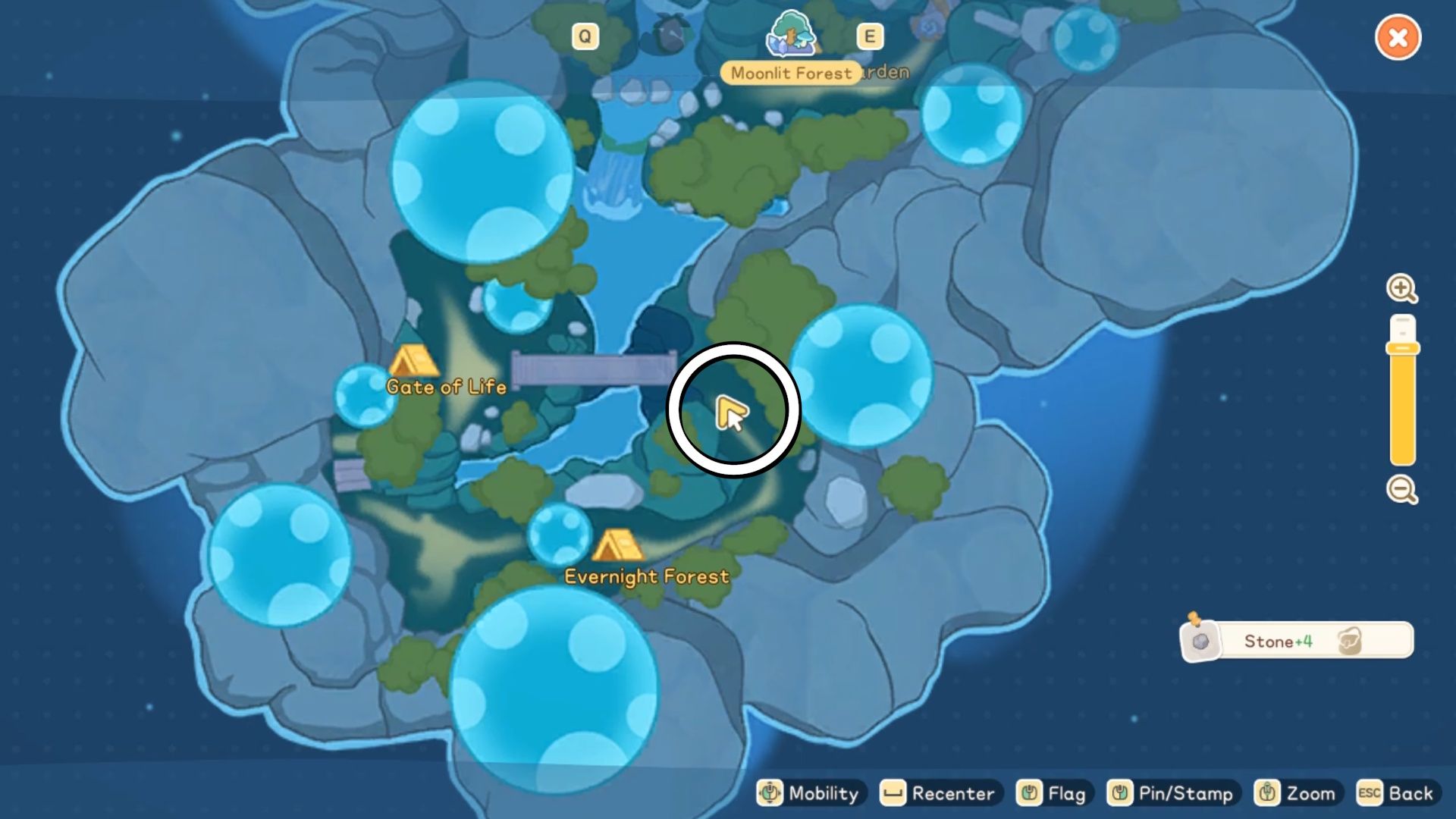 To unlock the Gate of Life in Moonlit Forest, you’ll need to locate and mine three Gravecrystals using your pickaxe.