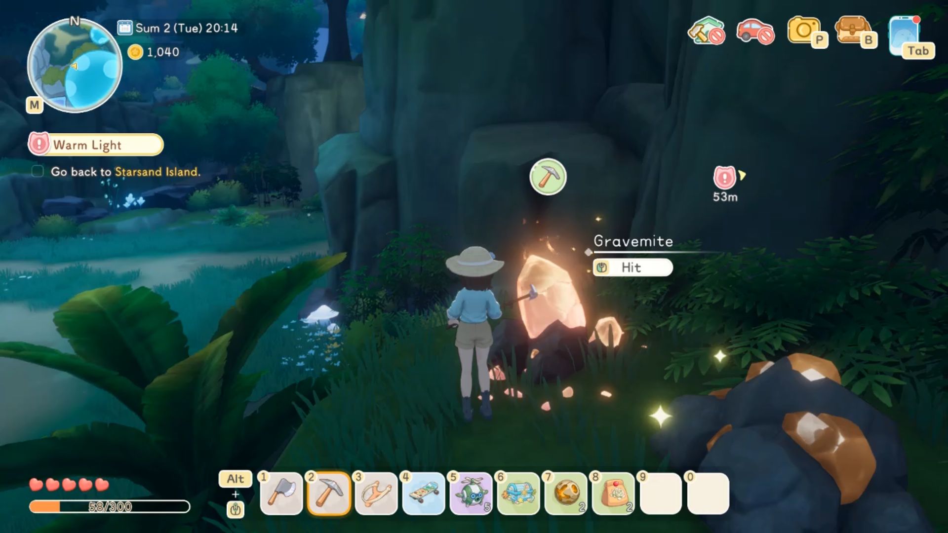 The final Gravemite for the Gate of Life on Starsand Island is found on the small cliffs just south of the Gate itself. From the Gate of Life camp, follow the path downwards, and you’ll see it glowing at the southernmost point. Simply jump up onto the cliff to mine it, releasing the last Gravestar and allowing you to continue into the Moonlit Forest.