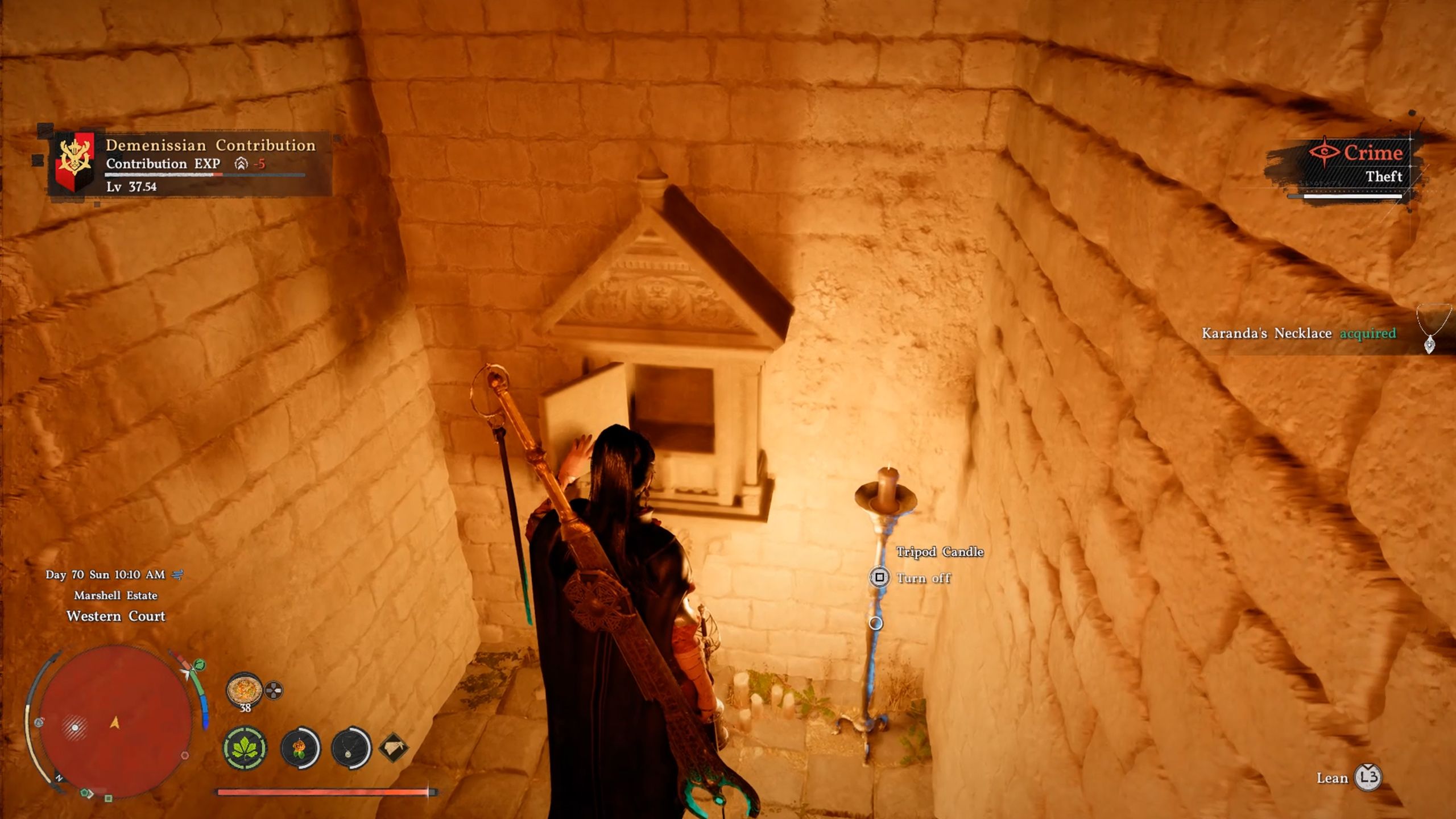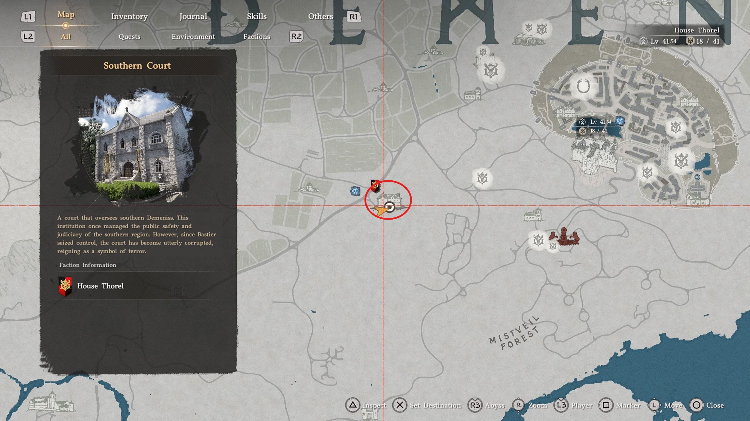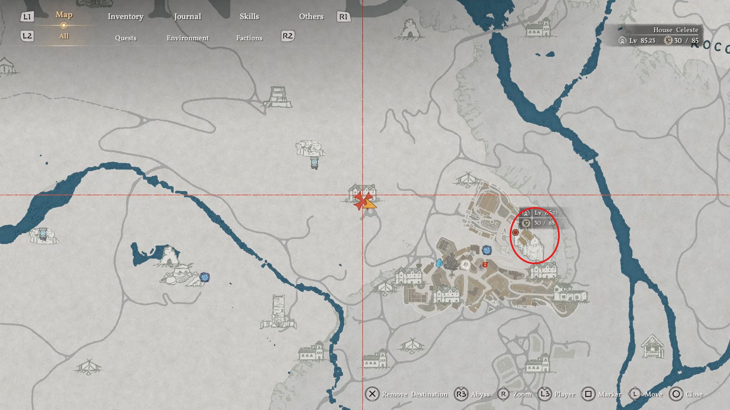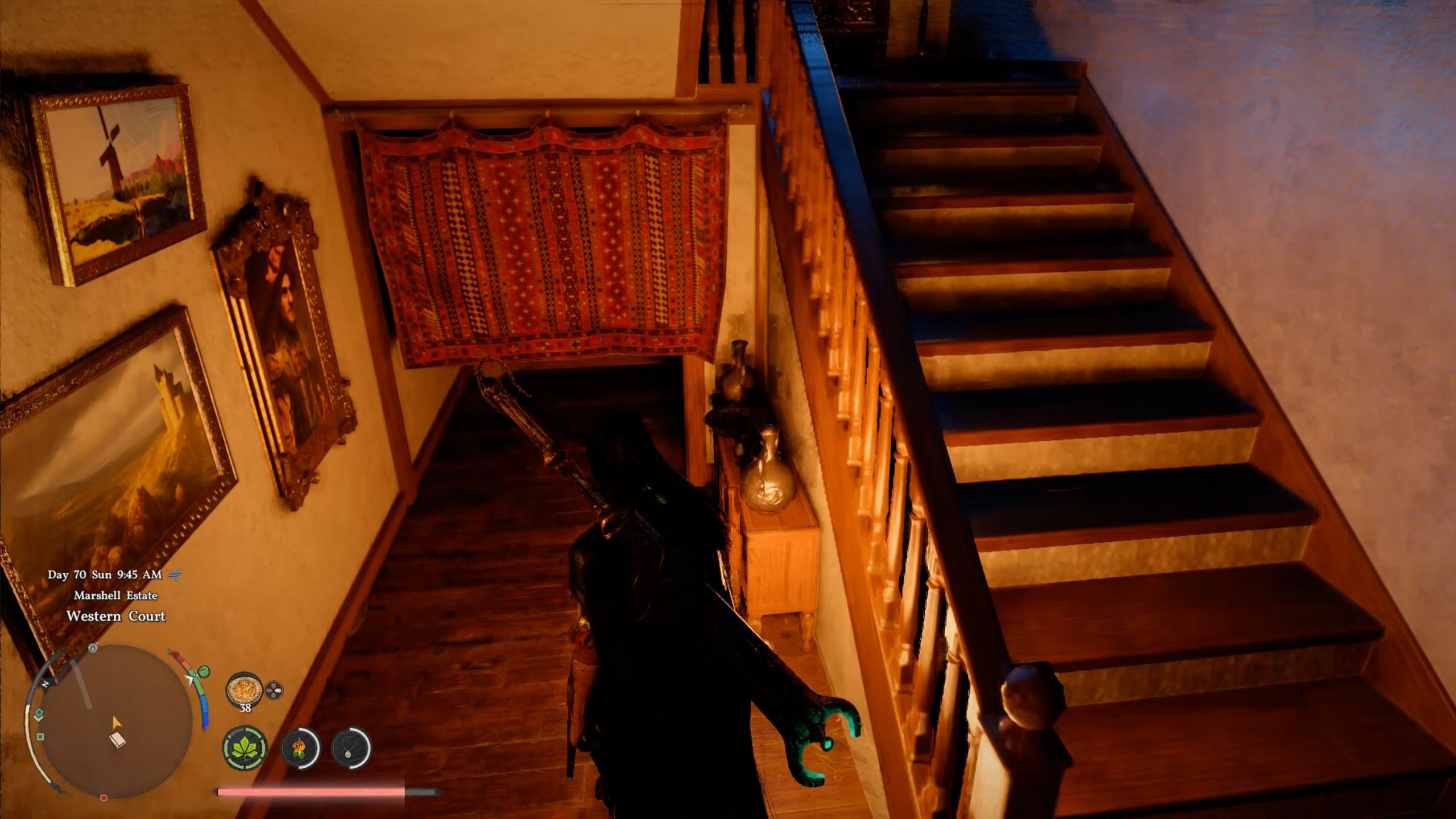 To reach the Western Court, look above the ‘M’ on the Demeniss map. You may need to fight and defeat the enemies, including the Half Moon Reaper, to claim the area, though stealth is also an option. Once inside, find the stairs and look for a curtain next to them on the first floor – it hides a ladder leading down to the basement. In the basement, you’ll need to solve a puzzle by rearranging the squares.