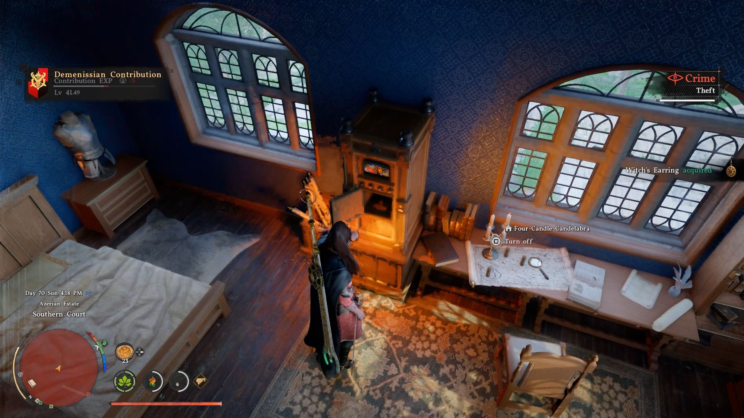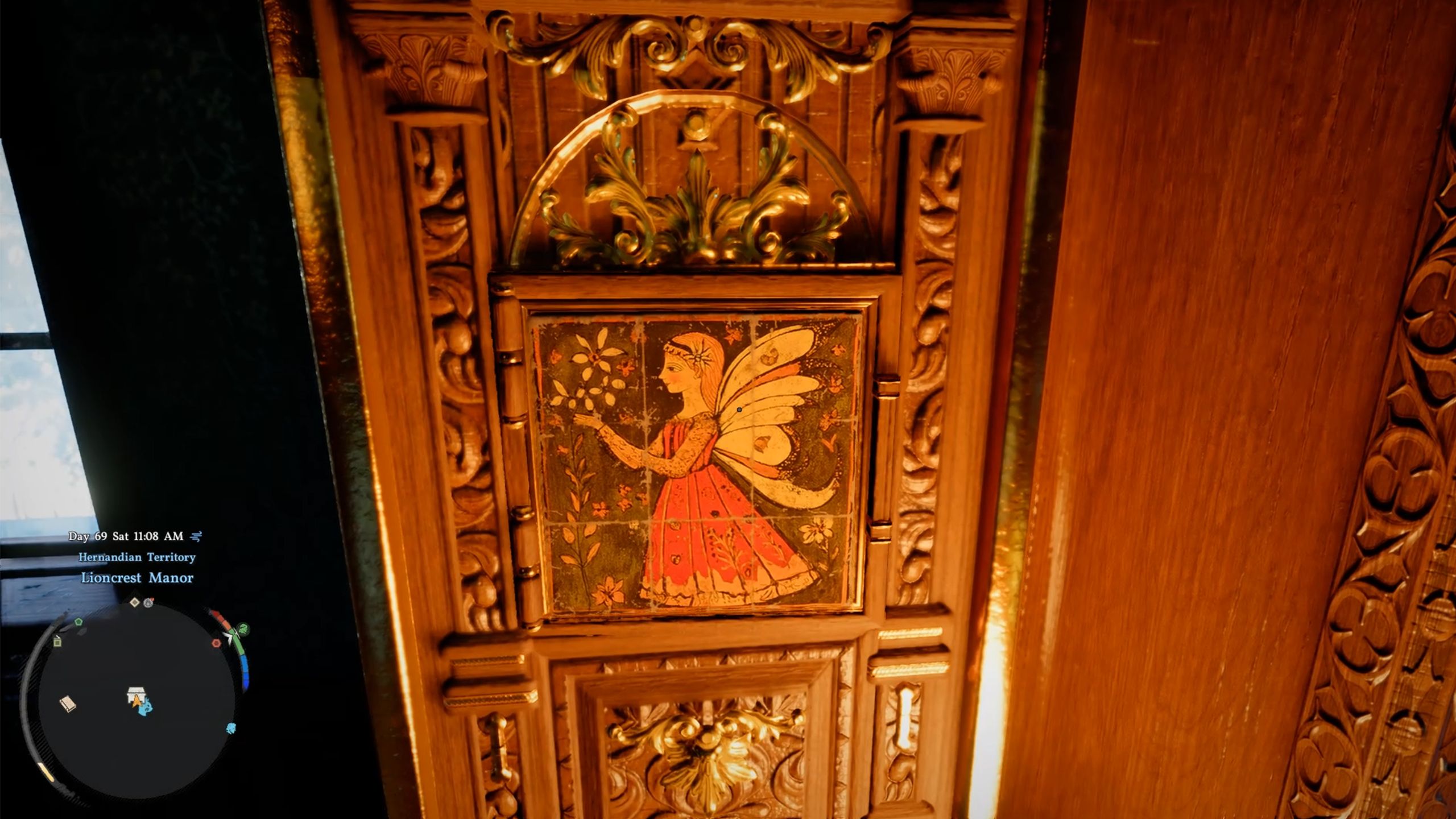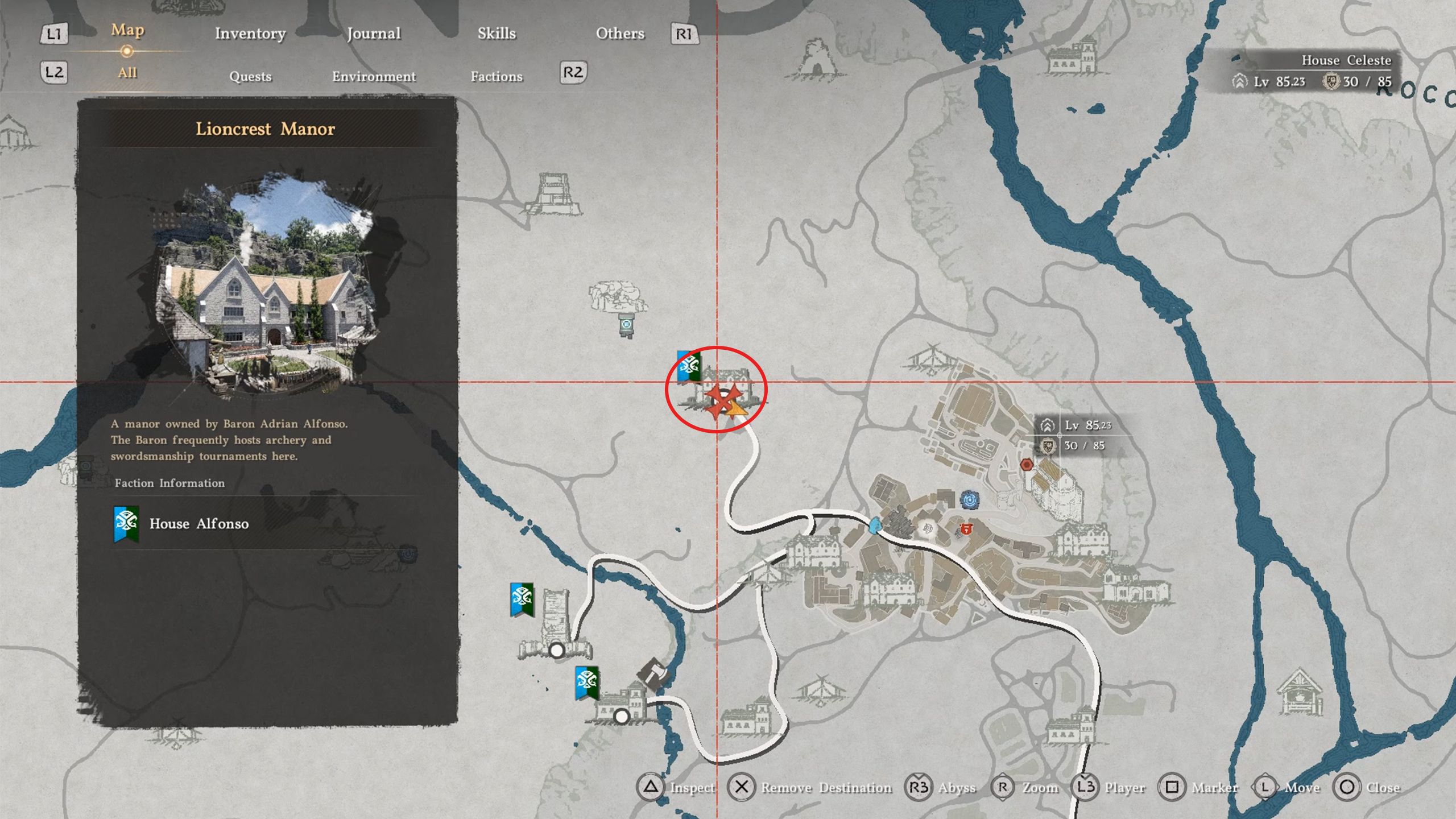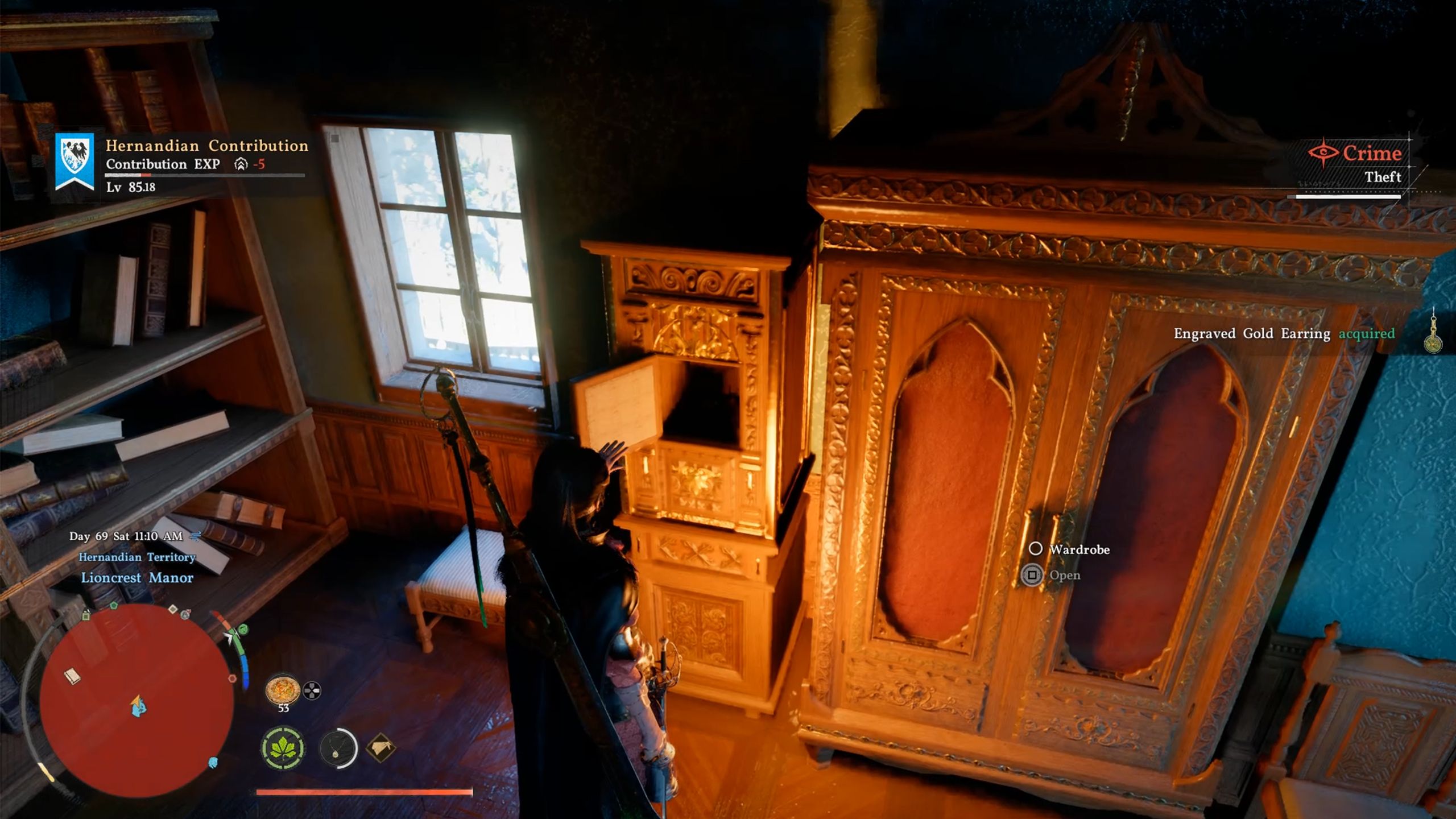 To reach Lioncrest Manor, head northwest of Hernand City. You can get inside by climbing the wall and opening a second-floor window, or simply use the main door if it’s unlocked. Once inside, you’ll need to solve a puzzle by rotating squares to complete a picture, which will unlock a strongbox containing the Engraved Gold Earring.
