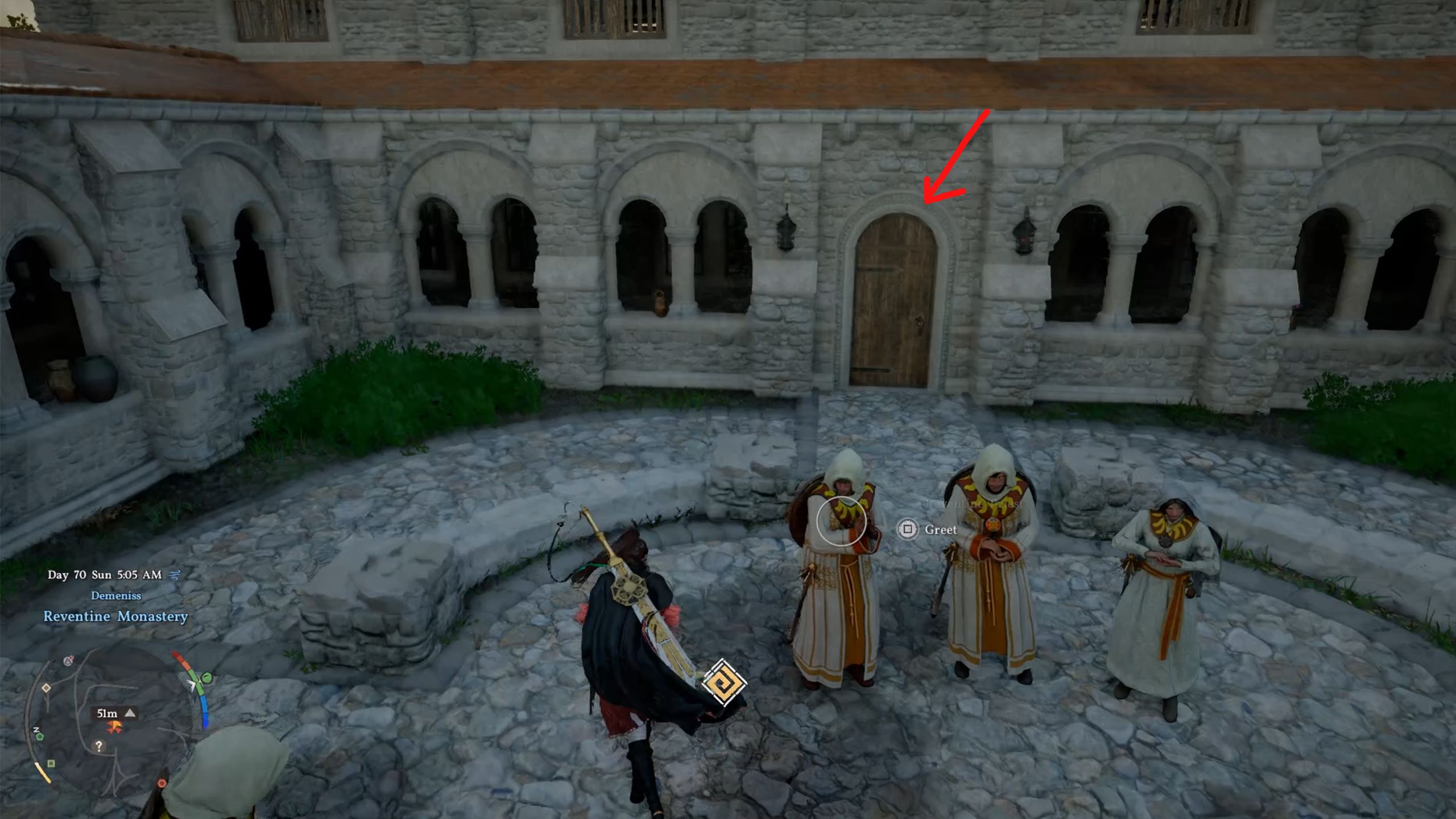 Head southeast from the Hills of No Return, or east of the town of Demeniss (look for the ‘D’ on your map), to find the Reventine Monastery. Once inside, make your way to the round courtyard with several doors. Go through the door on the east side and head towards the library on your right. Push on the library wall to reveal a hidden room containing a puzzle box. Solve the puzzle by sliding the tiles to complete the images.