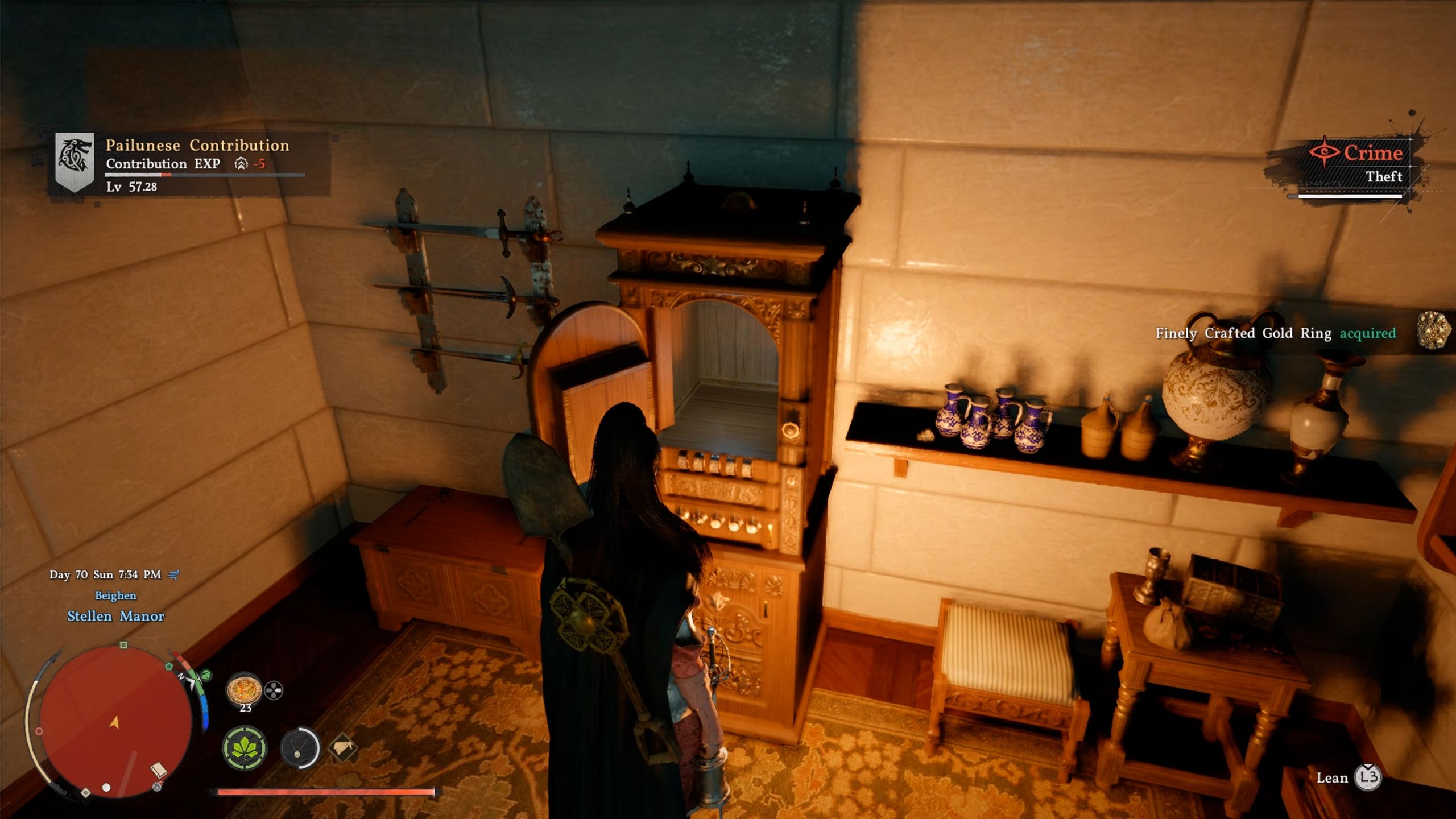 Stellen Manor is found to the northeast of Drakesfall Gorge. To start the first puzzle, head to the top of the tower. You can reach it by climbing the walls and entering through a window. Once inside, solve the puzzle by aligning the cylinders using the wheels.