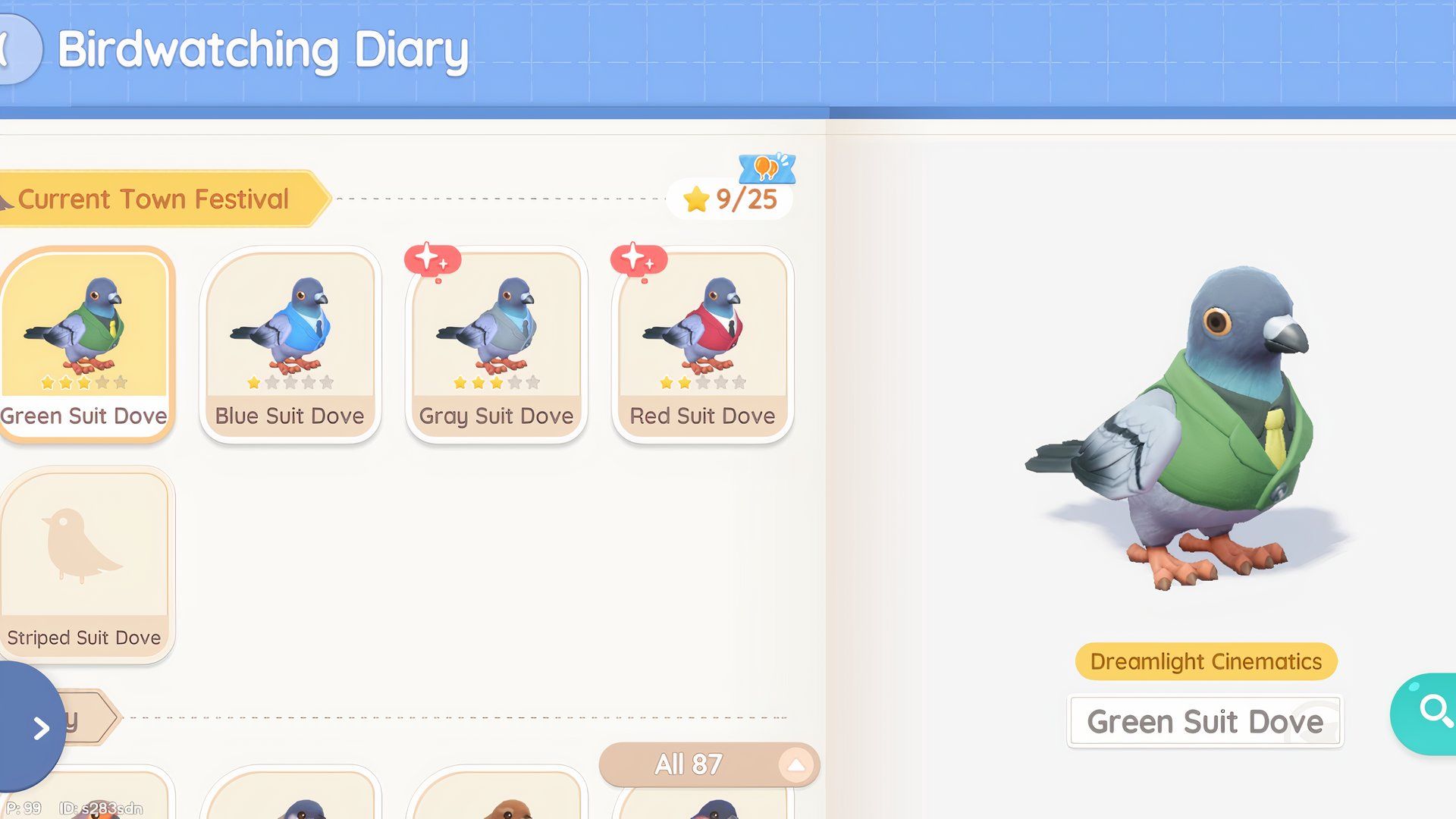 Looking for Suit Doves in Heartopia during the Dreamlight Cinematics event? Head to the Forest! You can find the Blue, Gray, Green, and Red varieties both during the event and at any time while you’re playing.