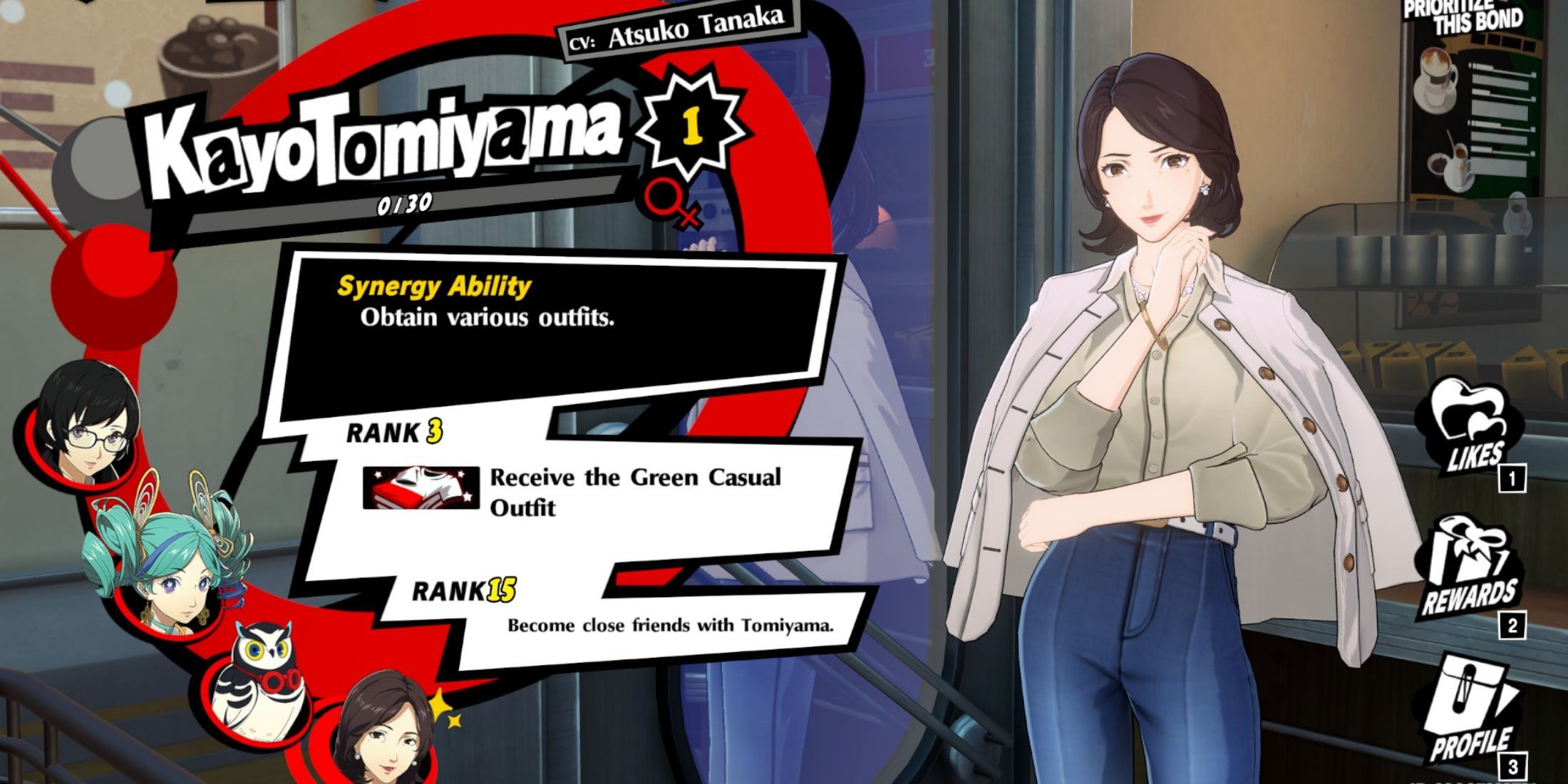 Kayo Tomiyama’s Synergy Bond is activated upon finishing the ‘Generations Apart’ side-quest, immediately following the conclusion of Miyazawa’s Palace Infiltration. Unlike Yui, Kayo isn’t romanticable; instead, she can be considered a Best Friend. Her friendship offers unique customization opportunities, primarily focusing on clothing items, and allows access to clothing and accessories shops in Shibuya. To strengthen this bond, players should maintain a good Charm Social Stat standing. Here is a comprehensive list of the rewards players receive as they enhance their Synergy Rank with Kayo: