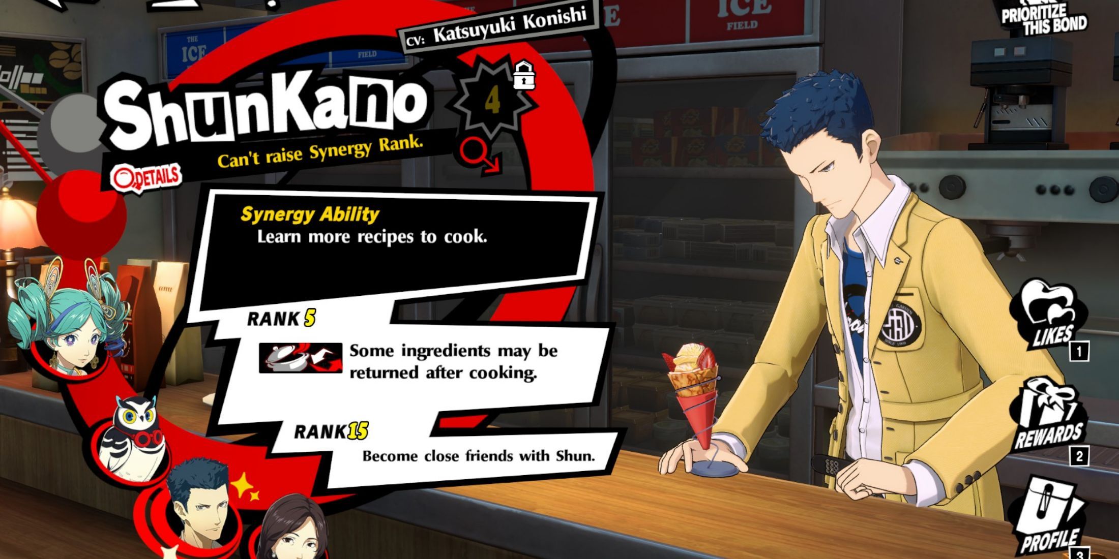 In simpler terms, Shun Kano is one of the rare male characters in the game with whom players can build relationships. Shun appreciates anything related to food as gifts, such as cooking knives, spices, ingredients, and especially the Last Model Vacuum Cleaner. These presents help speed up his relationship-building rate, known as Synergy Rank. As you increase this Confidant’s Synergy Rank, several perks can be unlocked, which will enhance Wonder’s Cooking skill. This leads to acquiring more recipes, greater output when crafting, and better chances of cooking high-quality dishes. To boost Shun’s relationship, players should focus on improving their Guts Social Stat. The Guts stat can be developed by working at the Beef Bowl Shop or visiting the Gym regularly.