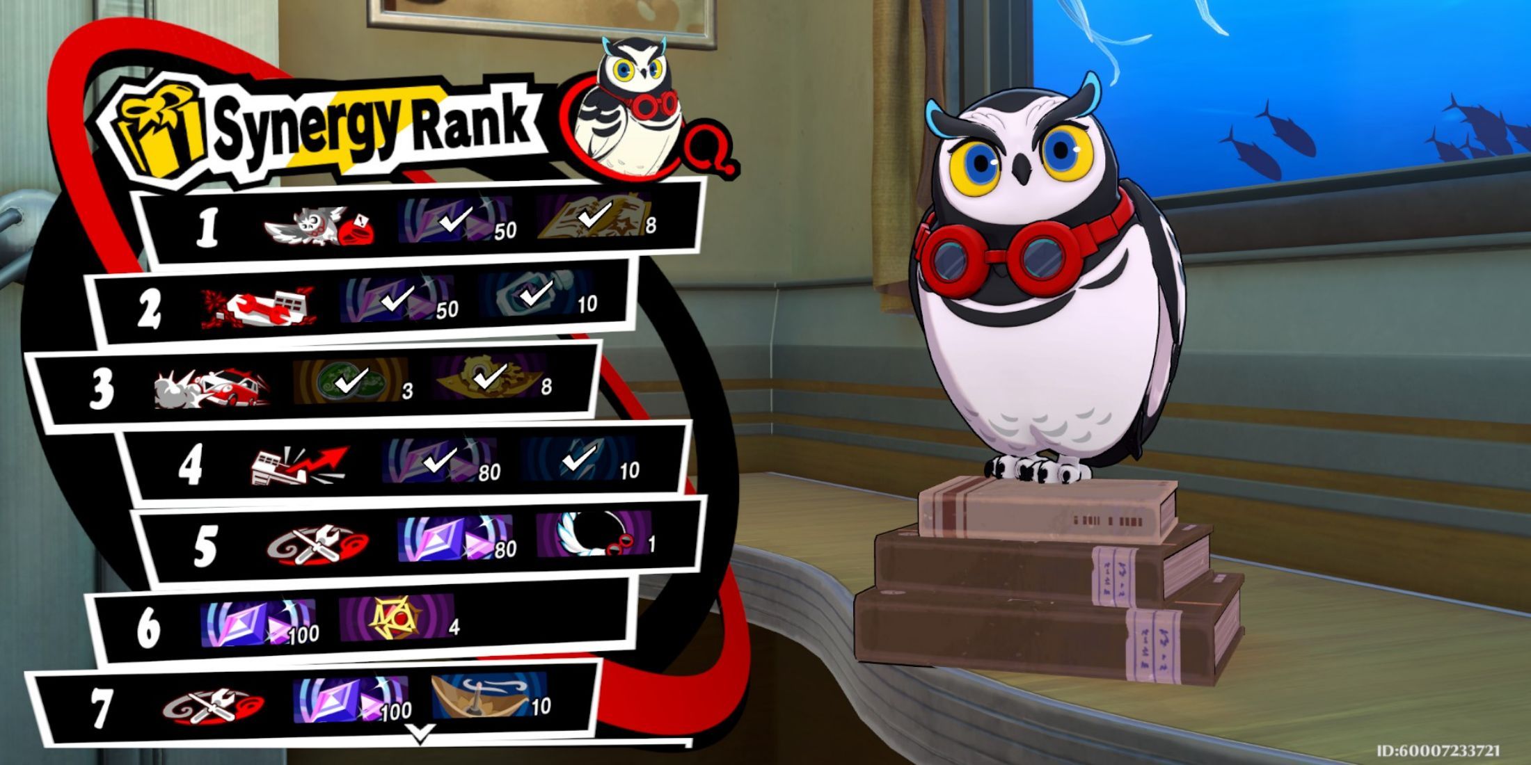 As I dive into the captivating world of Persona 5: The Phantom X, it’s during the main narrative where I’ll forge my initial bond, not with just any character, but with a charming owl named Lufel. This feathery friend of mine will grant me access to the Workbench from the get-go, and more importantly, will unlock the intriguing Synergy Rank system. This system is all about City Life activities and boosting my Social Stats, making my adventure even more immersive!