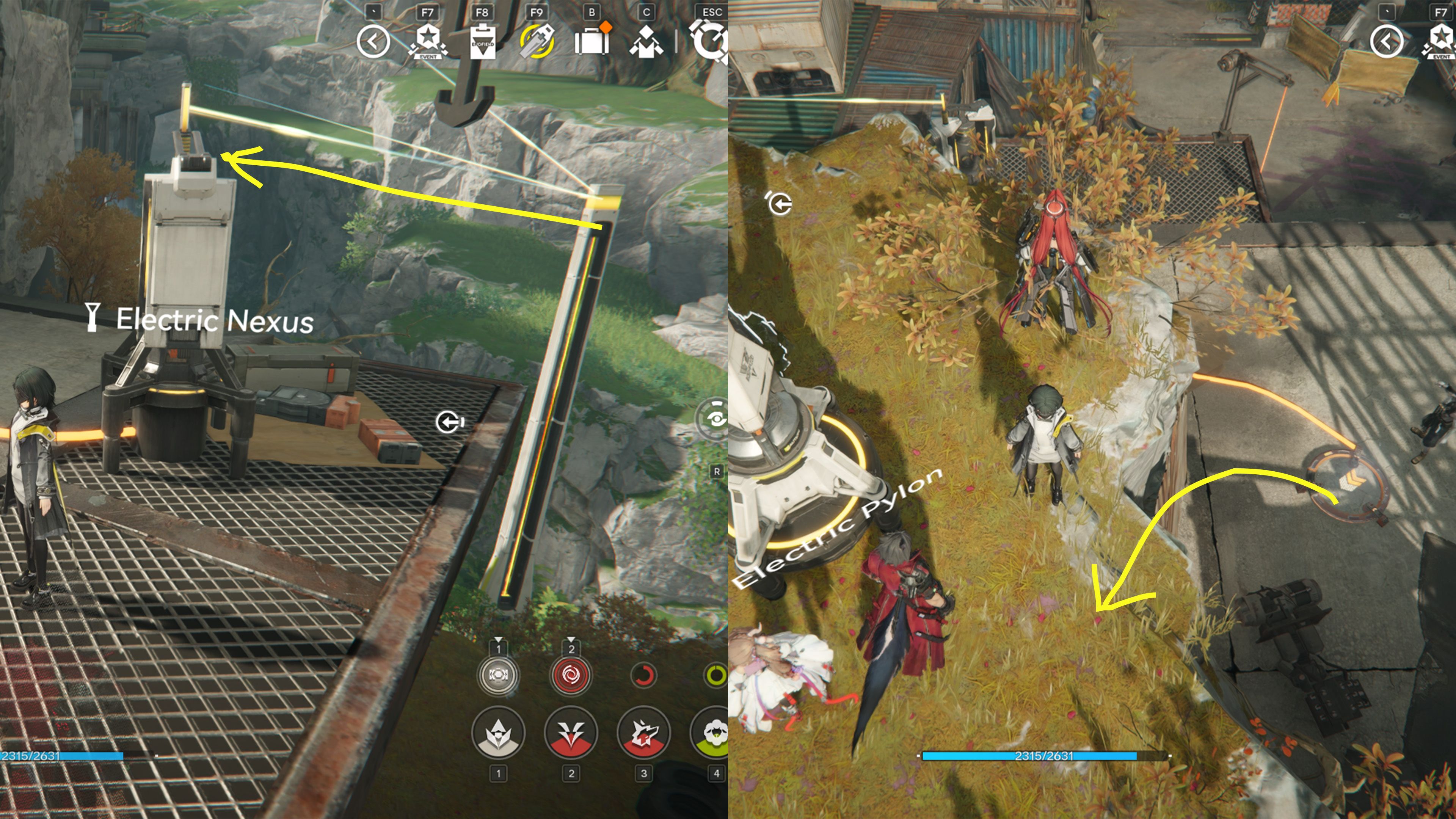 Head to the east side and use the Rope to climb up to the cliff. At the top, you’ll find an Electric Nexus. Connect this to the Refugee Camp Sub-PAC using the Relay Towers. Then, use the Bounce Device to reach the very top of the cliff and find the fourth Aurylene Location in Valley Pass.