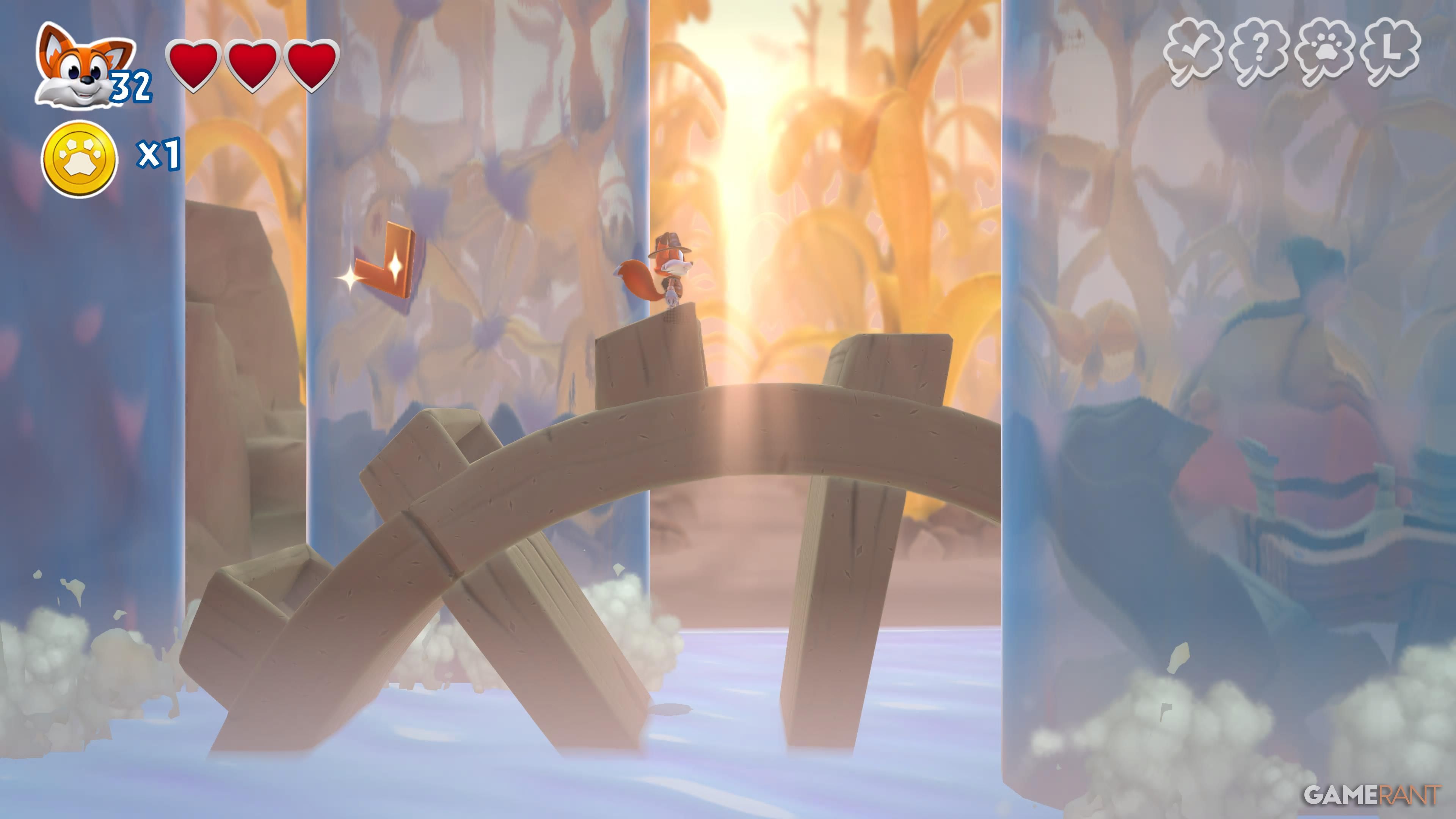 So, in New Super Lucky’s Tale, the only things I can collect are pages. I earn them by finishing levels in each world. There are a few ways to get them – I can beat a platforming stage, grab 300 coins, hunt down hidden pages, or collect all the LUCKY letters scattered around. It’s pretty straightforward!