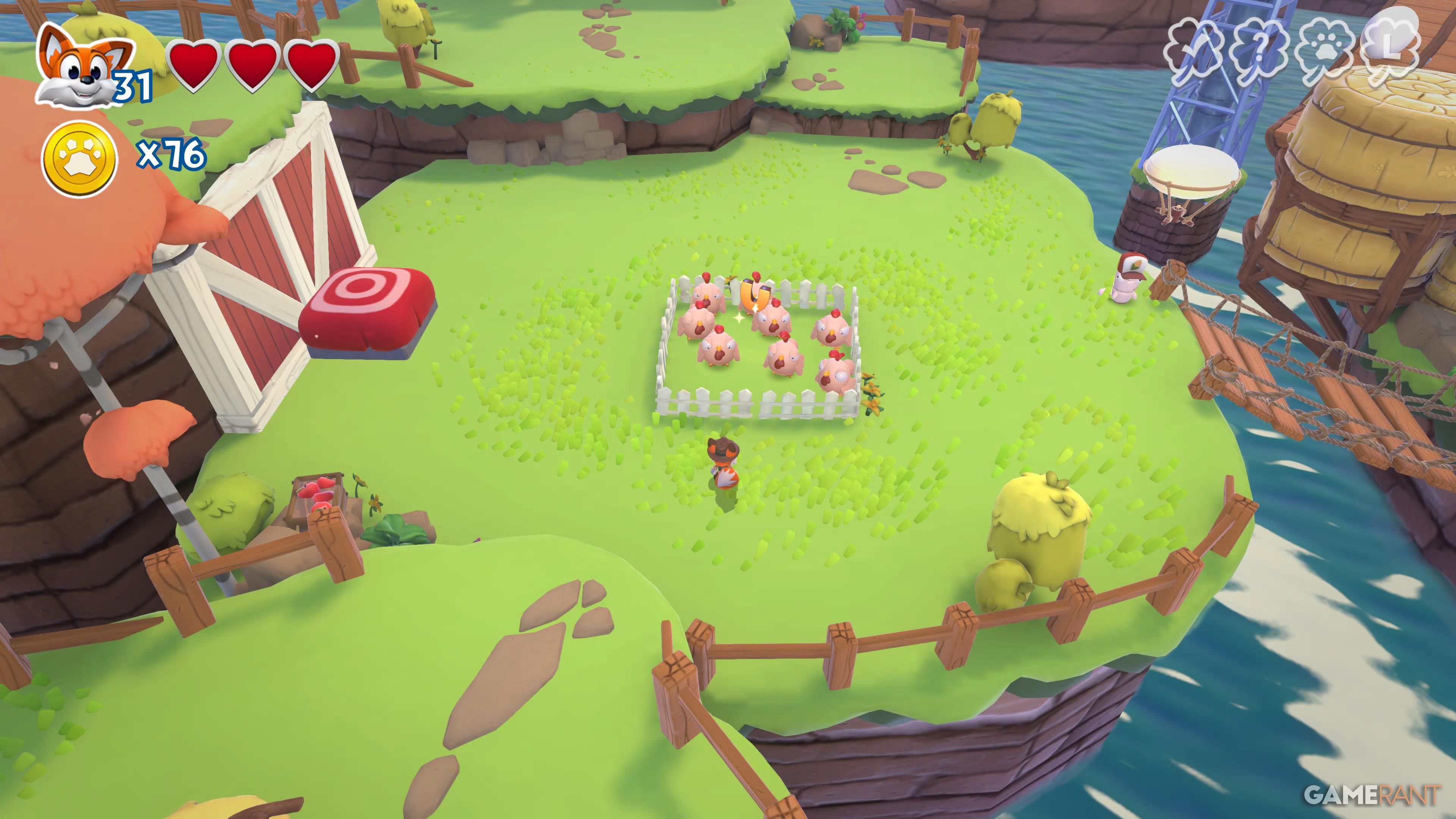 Take a right after the bridge with the eggs, and here you will find yellow chicks that you need to get close to and lead to the mama chicken. There are six in total, and you should try to walk slowly so they are not left behind. |
