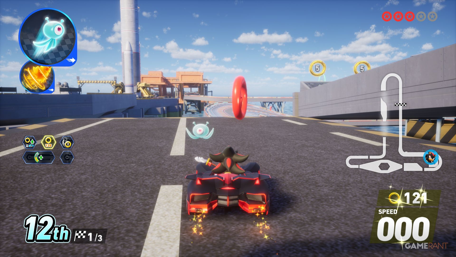 The Red Rings in the Metal Harbor race are generally not too difficult to get, but you’ll need to complete two laps because the track splits into different routes.
