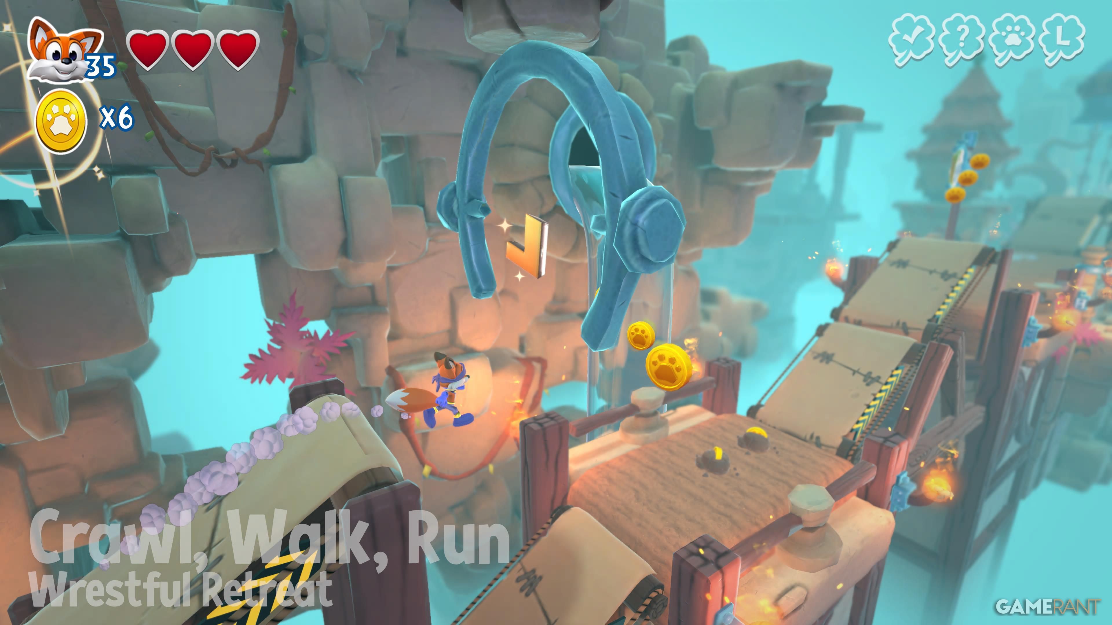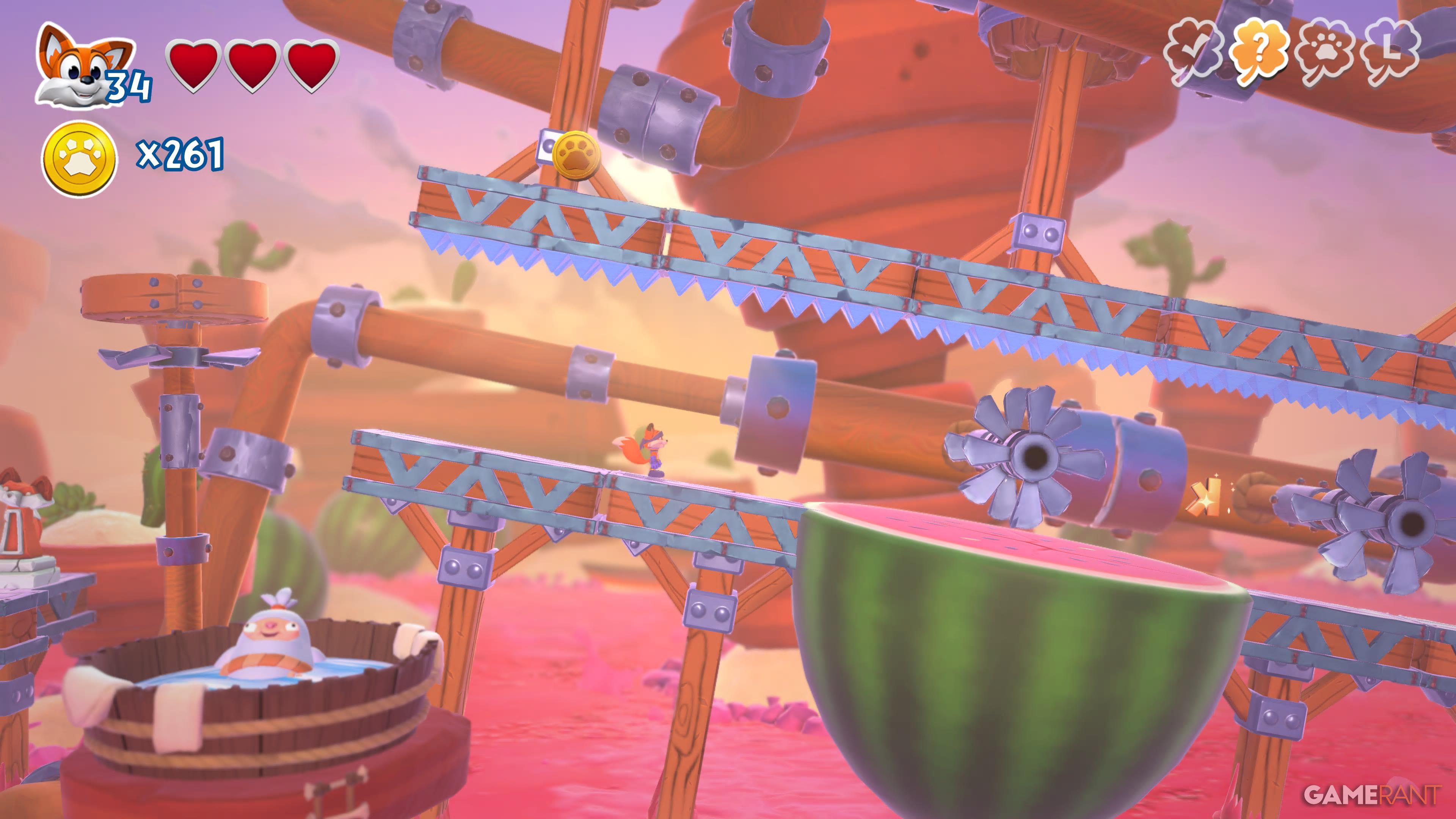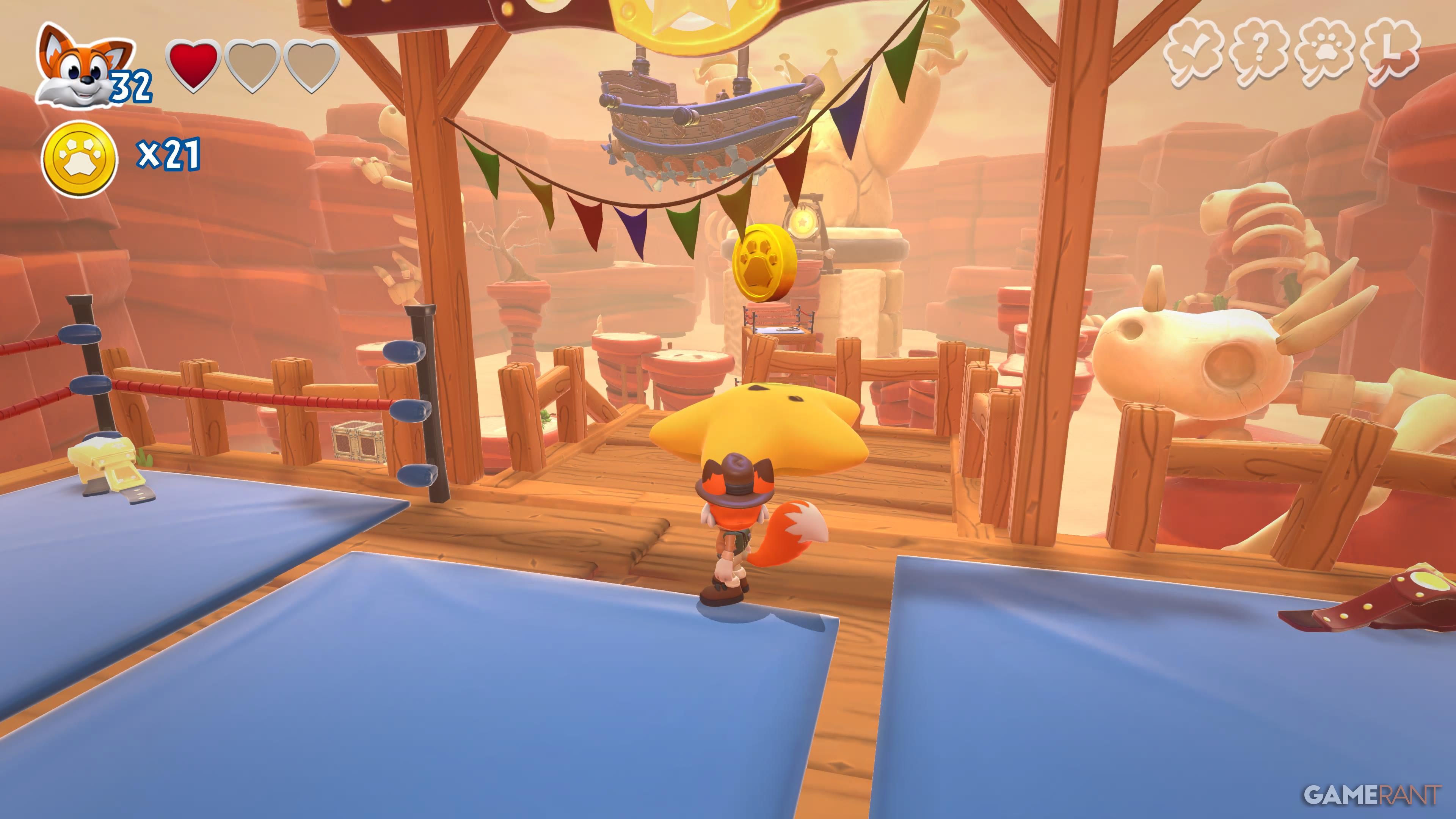 Wrestful Retreat is the third world you’ll explore in New Super Lucky’s Tale. It has five levels and a total of 30 collectibles. You can also find six sliding block puzzles in the central hub area – solving each one will give you a page for your collection. The guide below details where to find everything.