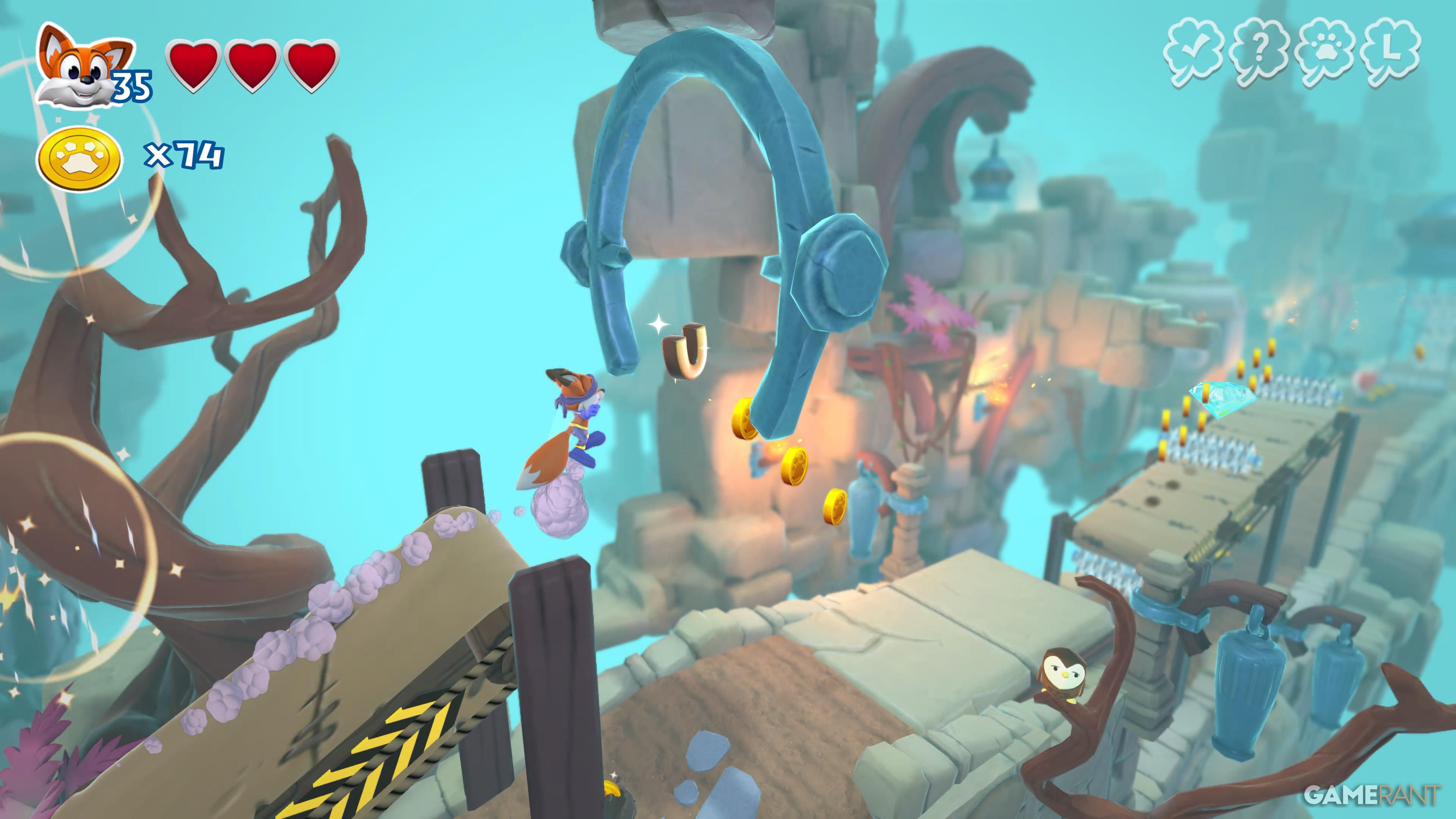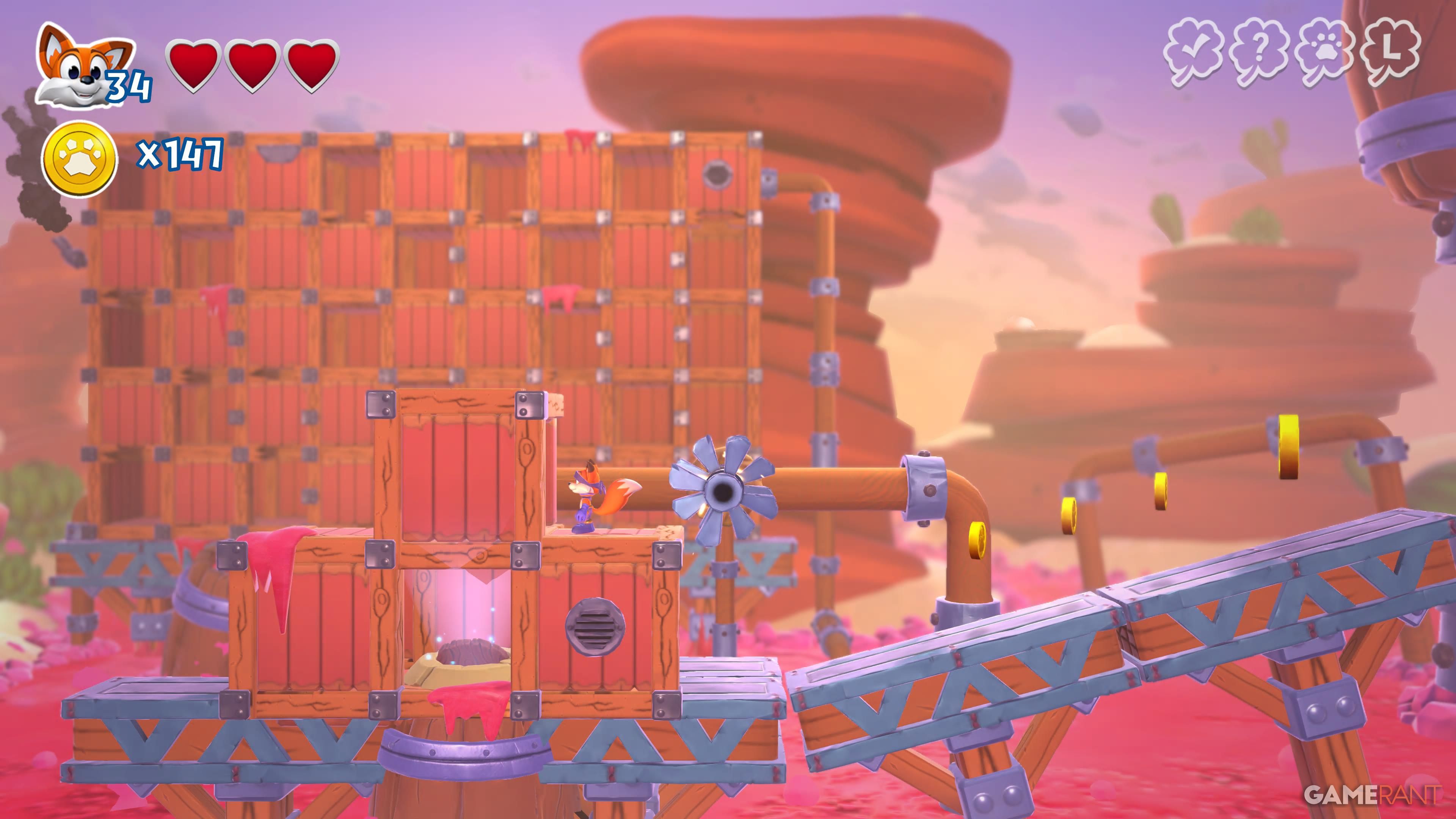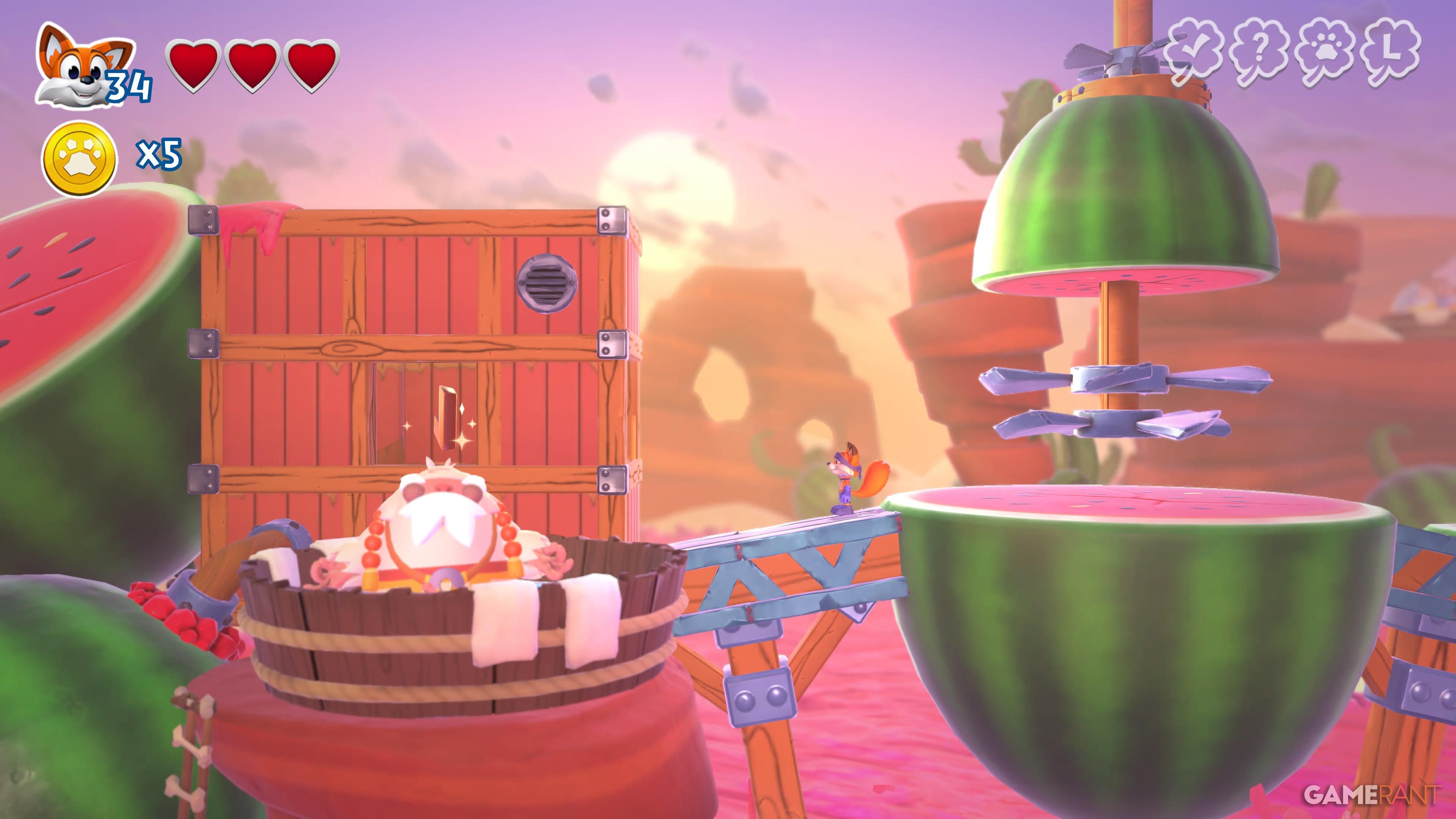 Wrestful Retreat is the third world you’ll explore in New Super Lucky’s Tale. It has five levels and a total of 30 collectibles. You can also find six sliding block puzzles in the central hub area – solving each one will give you a page for your collection. The guide below details where to find everything.
