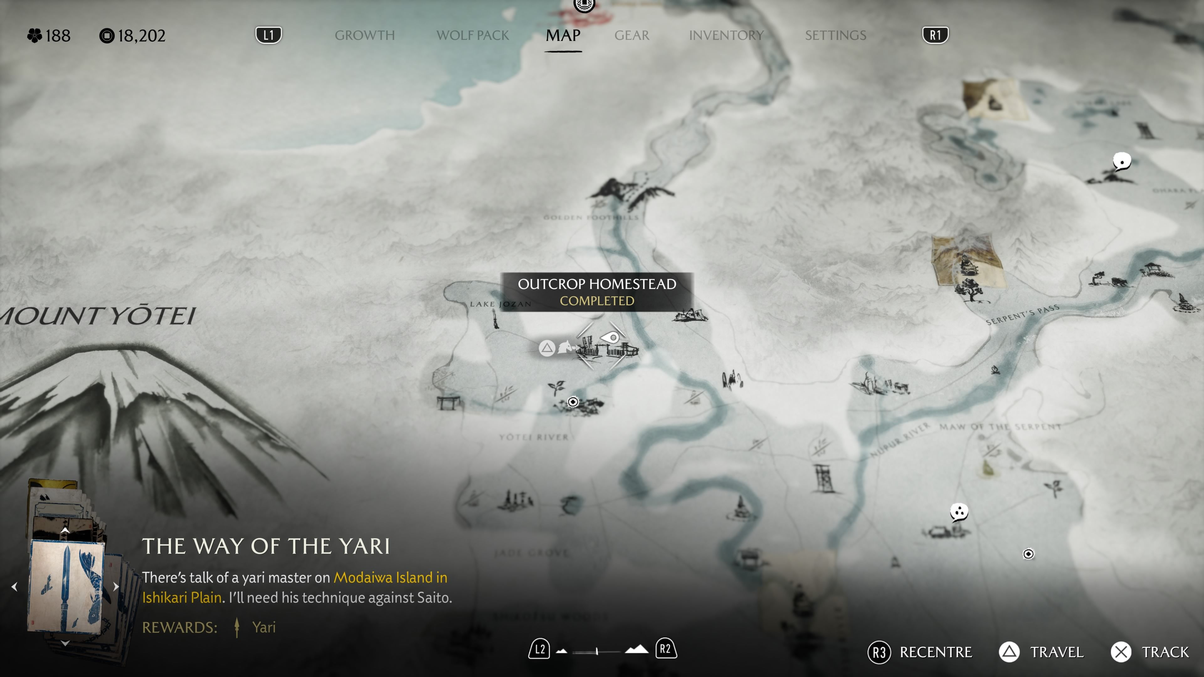 Outcrop Homestead is northeast of the Yotei River. To find it, follow the river upstream, and when the river divides, head to the right.
