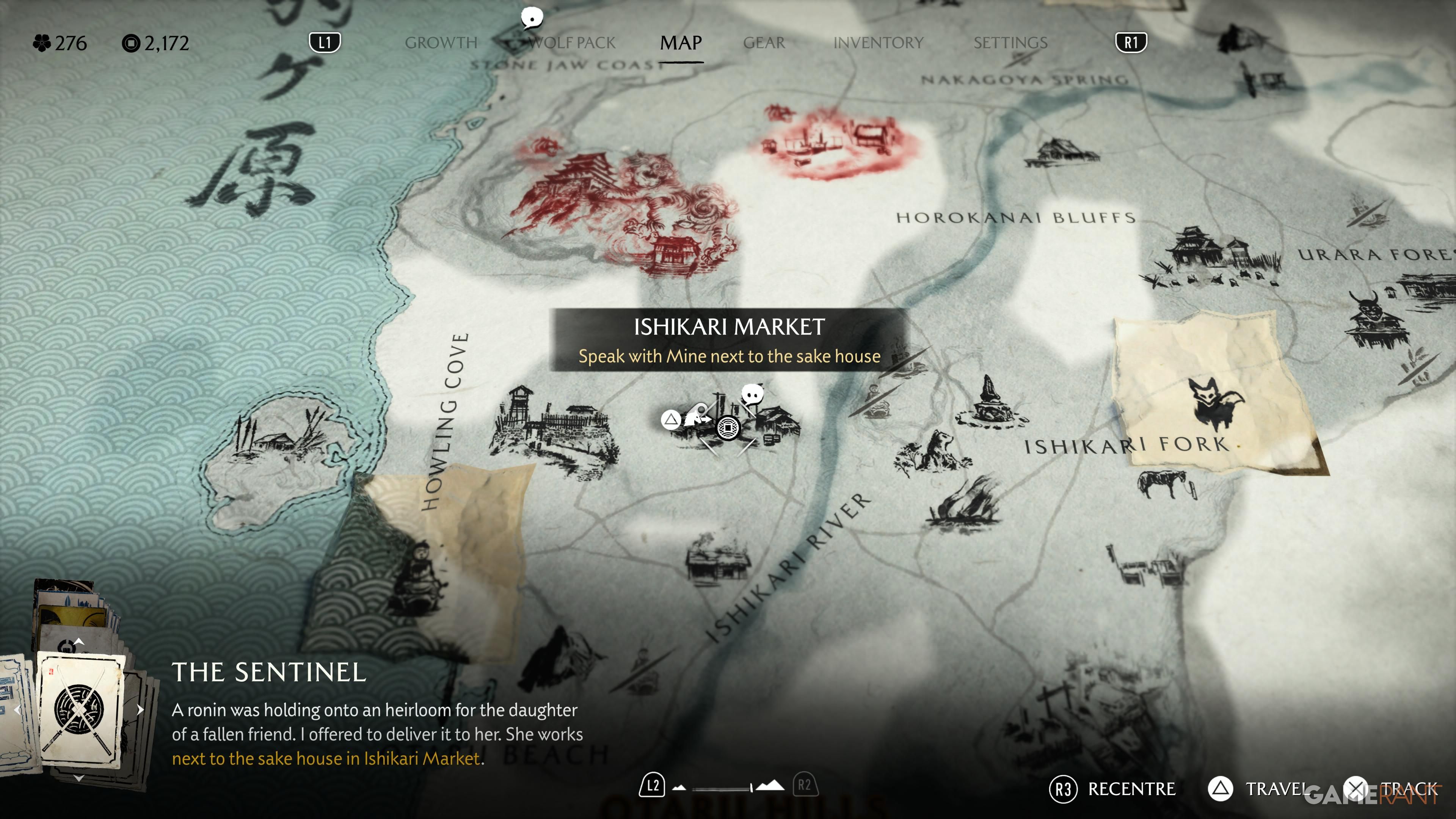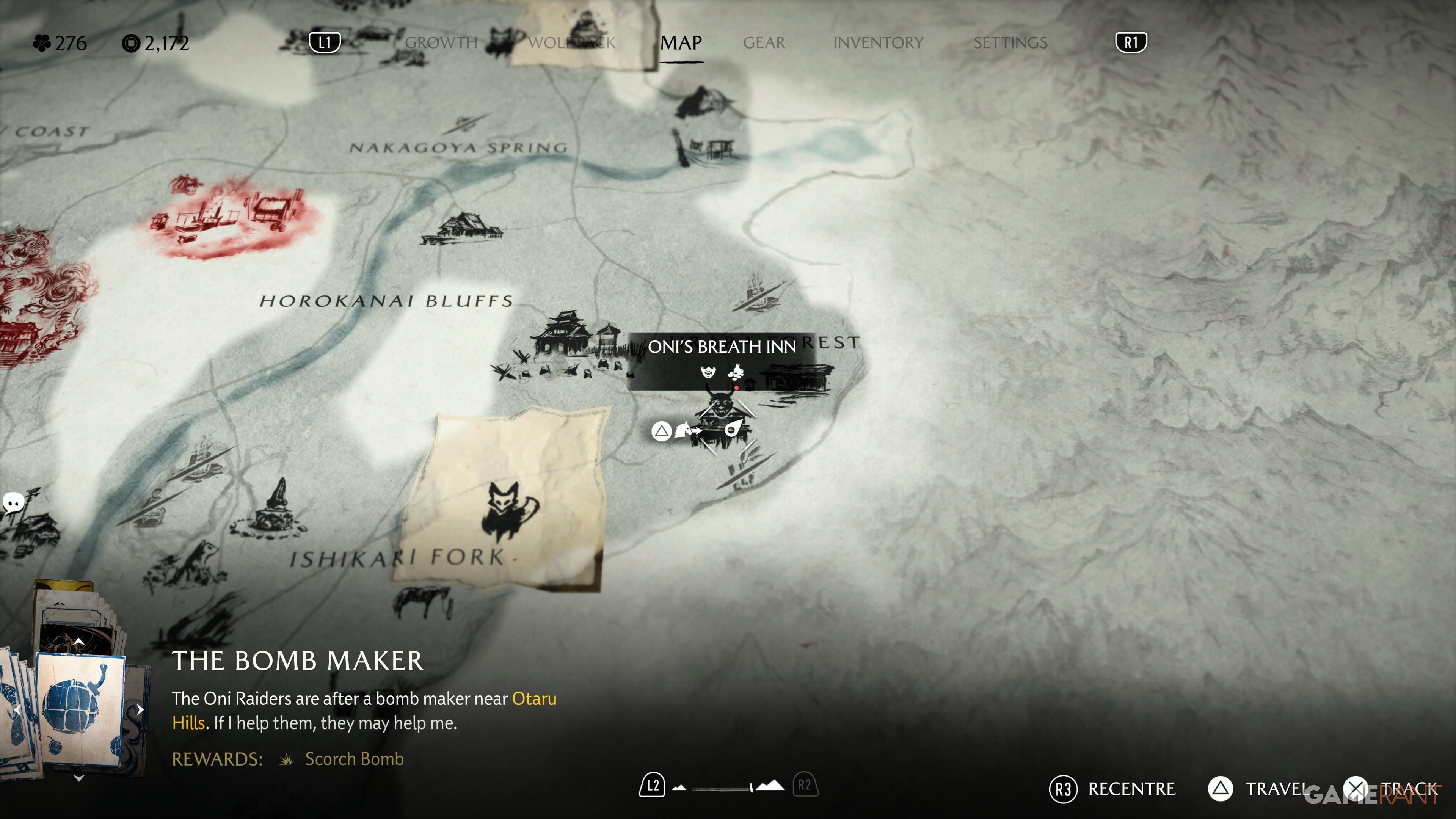 When you arrive at the Oni’s Breath Inn, located northeast of Ishikari Fork, you’ll find it overrun with enemies. You’ll start a Side Tale that involves entering the Inn, solving riddles while drinking sake, and defeating the occupants. Once the Inn is cleared, you can play the Zeni Hajiki game. If you win against the NPC twice, you’ll receive the Charm of Stolen Flame. Here’s what the charm does: