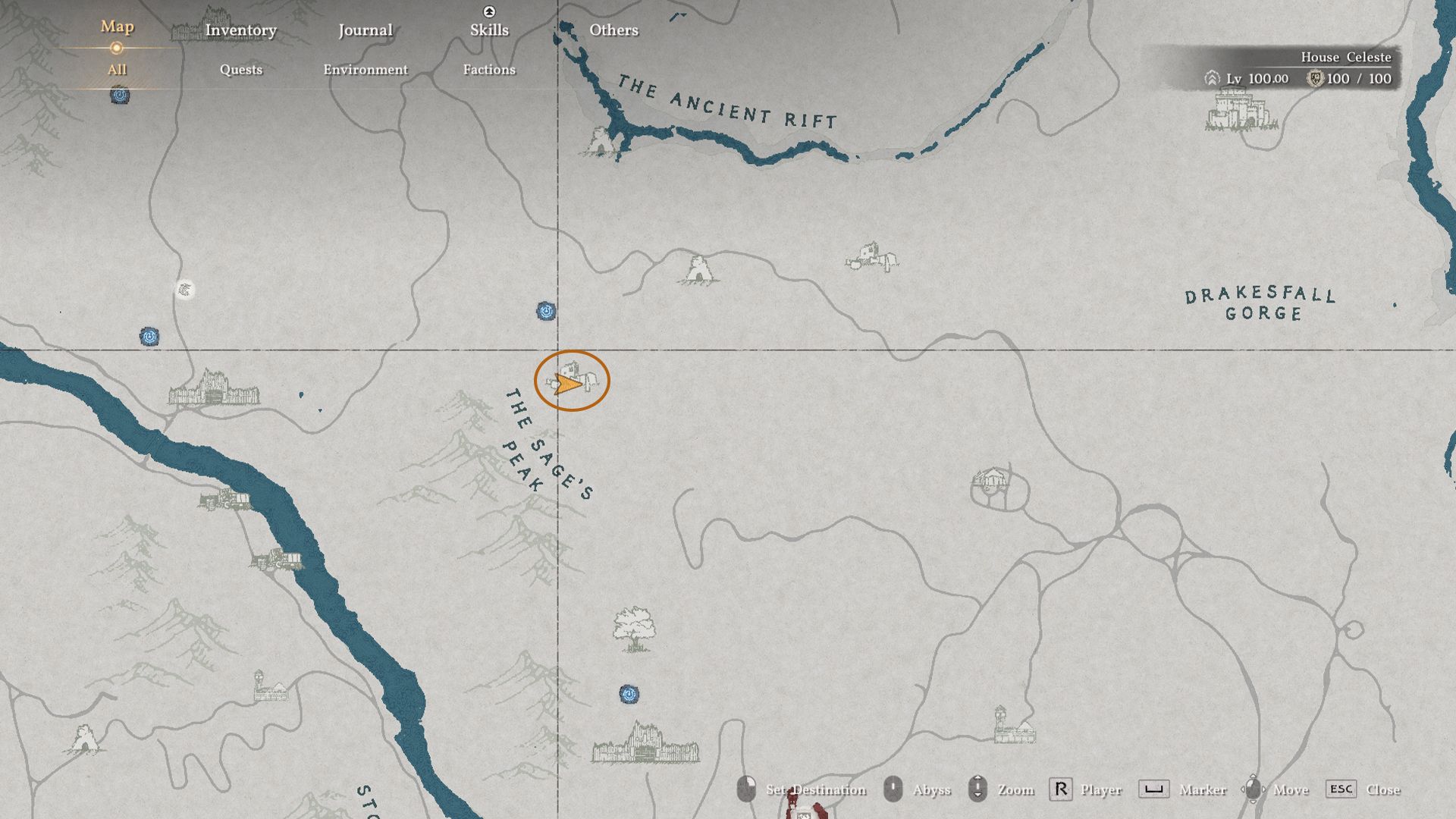 The Ancient Sealed Gate is located at the summit of Sage’s Peak. You’ll see a large fan pointing upwards, surrounded by wires. Be aware that an Abyss Nexus is very close to the gate.