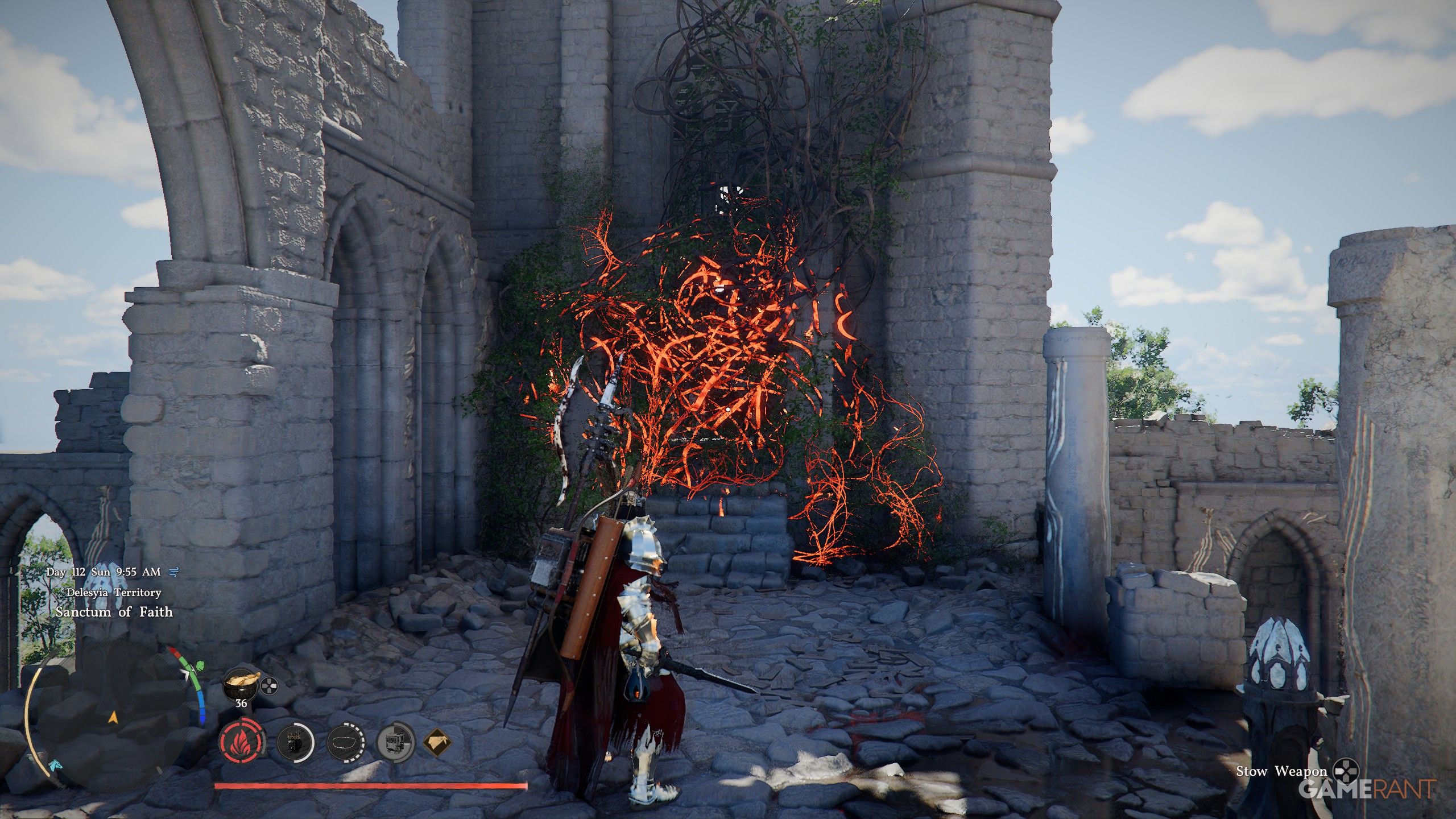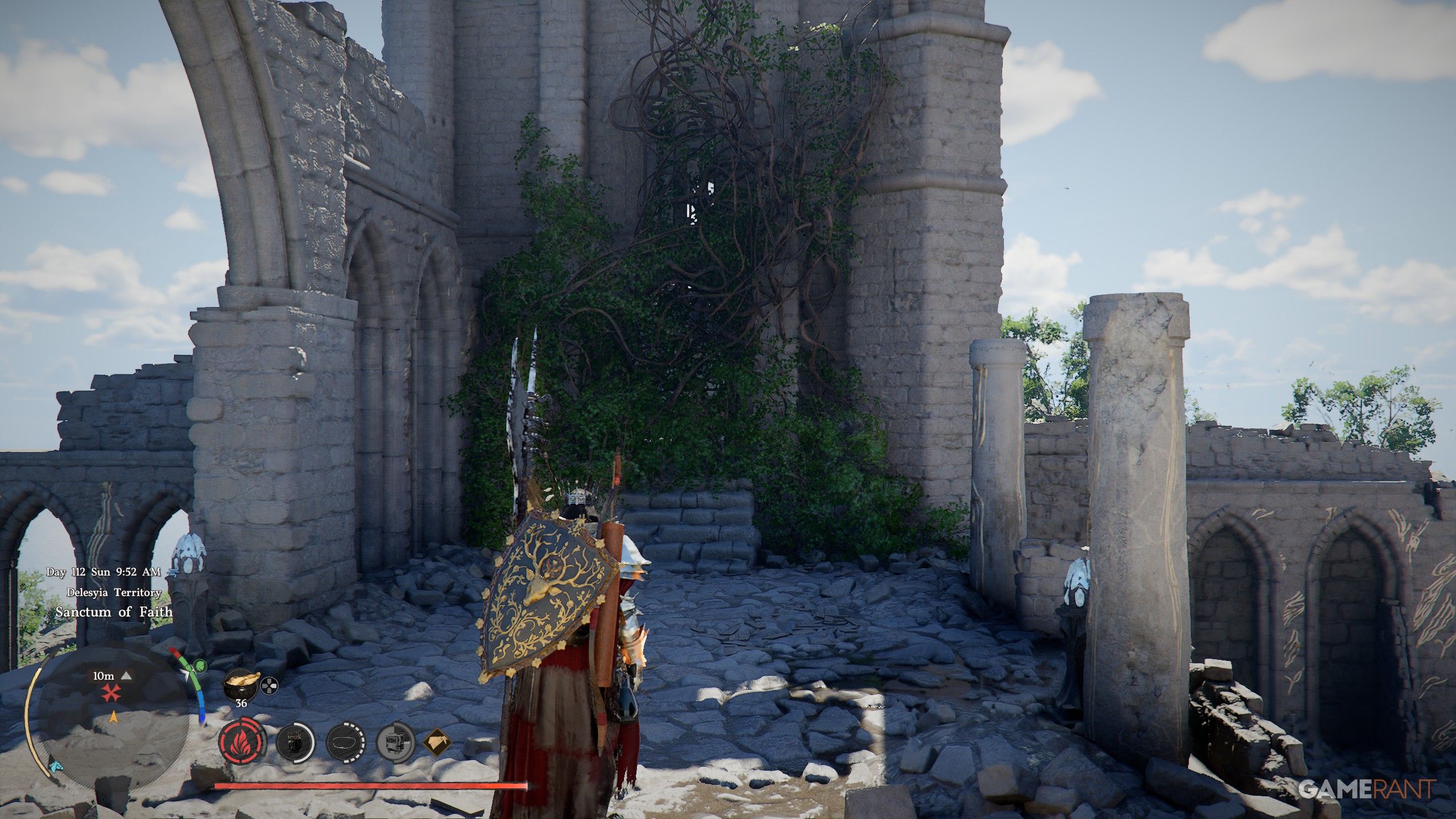 - At the Sanctum of Faith, head opposite the sanctum to find a tower covered in vines.