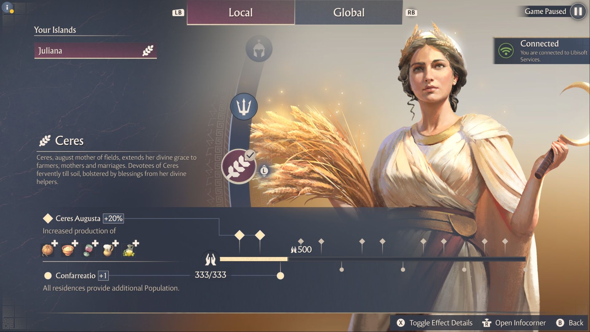 • Ability: Ceres Augusta – boosts the following production chains: