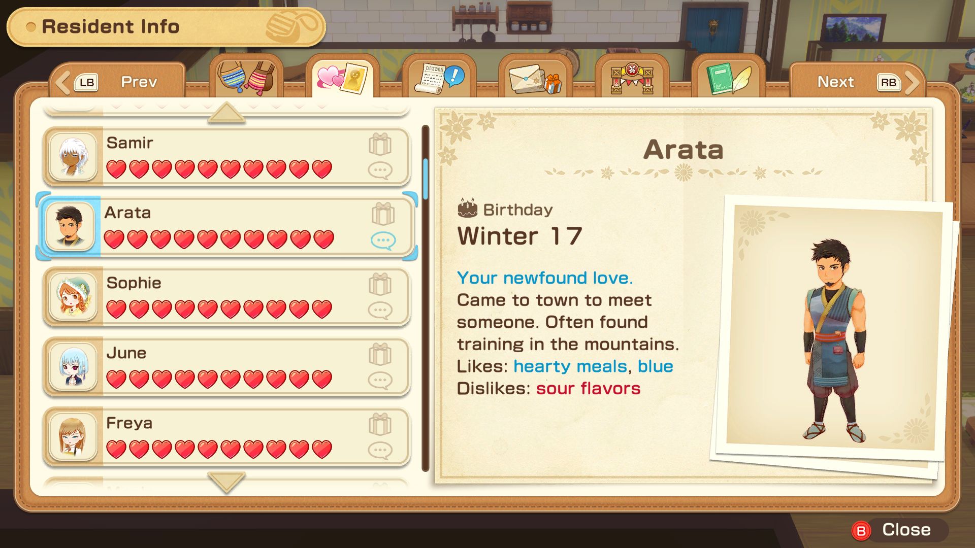Arata Friendship Overview In Story of Seasons: Grand Bazaar
