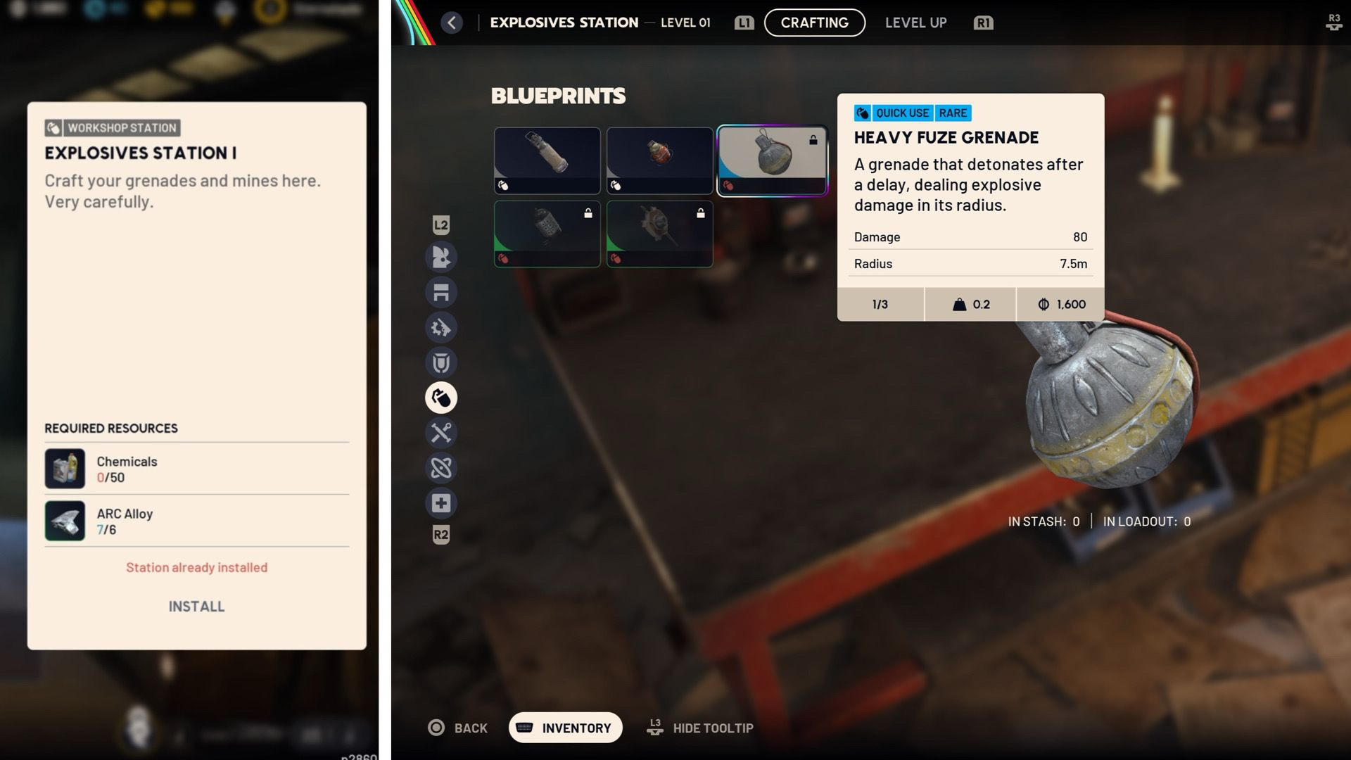 You can craft a variety of grenades and mines here, all of which are really helpful if used correctly. It’s important to time your throws and cooks properly to get the most out of them. While explosives can be effective, I personally prefer the accuracy of a gun, so I don’t rely on grenades too much.