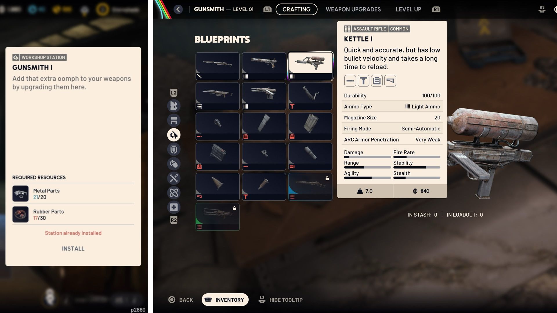 In ARC Raiders, the Gunsmith should be your first workshop priority. It’s cheap to build – requiring only metal and rubber, both of which are readily available without needing to fight on the surface. These materials are likely the easiest to find of everything you’ll need for any workshop.