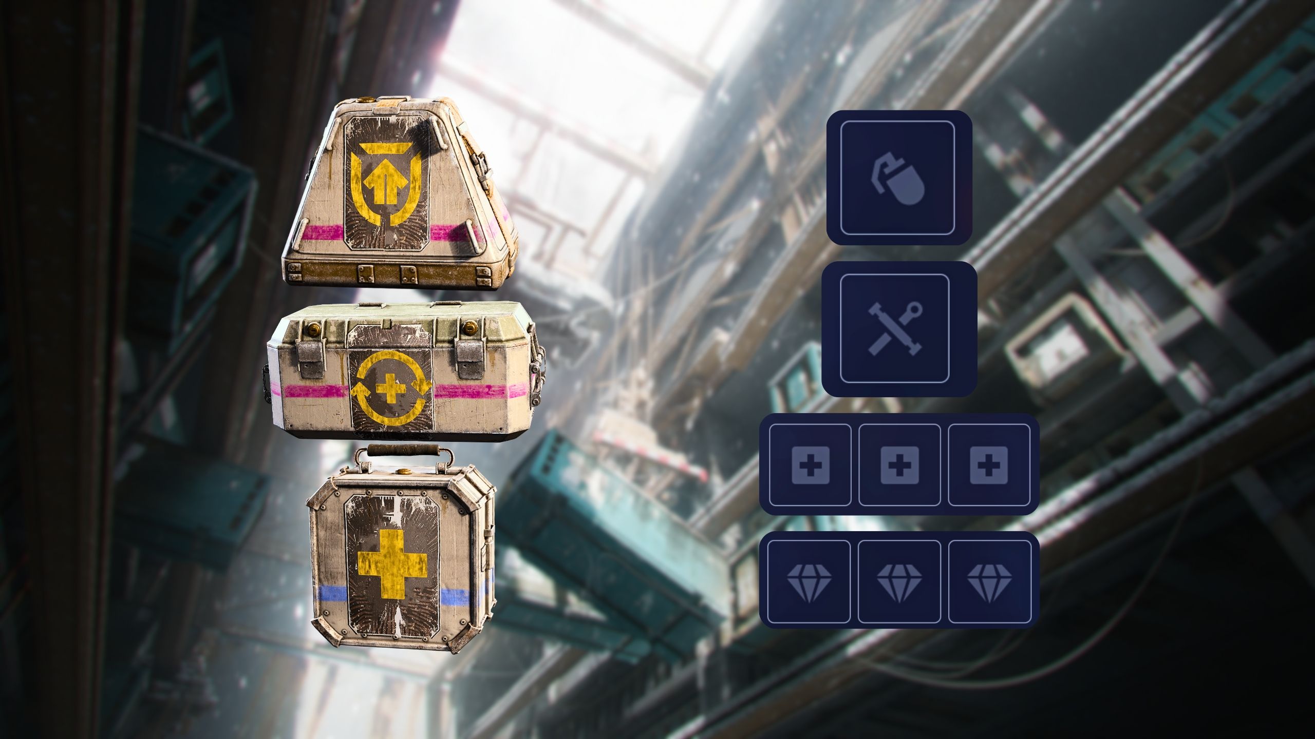 | Utility | Tactical MK. 2 | 1x Utility Augmented Slot | Any item classified as a utility (denoted by a crossed wrench icon in the bottom left) can be stored in these slots. You can store deployable items here, like mines, traps, binoculars, or barricades. |