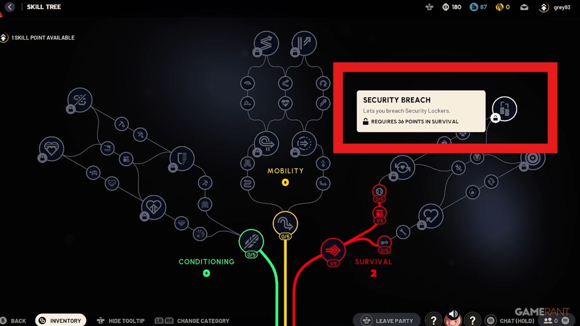 Not sure how to unlock new skills? From the main game screen, use the RB or R1 button to go to the Raider section. Then, on that screen, look for the leftmost icon under your character and click it to open the Skill Tree. You’ll find three skill categories – Conditioning, Mobility, and Survival – with around 50 different skills to choose from.
