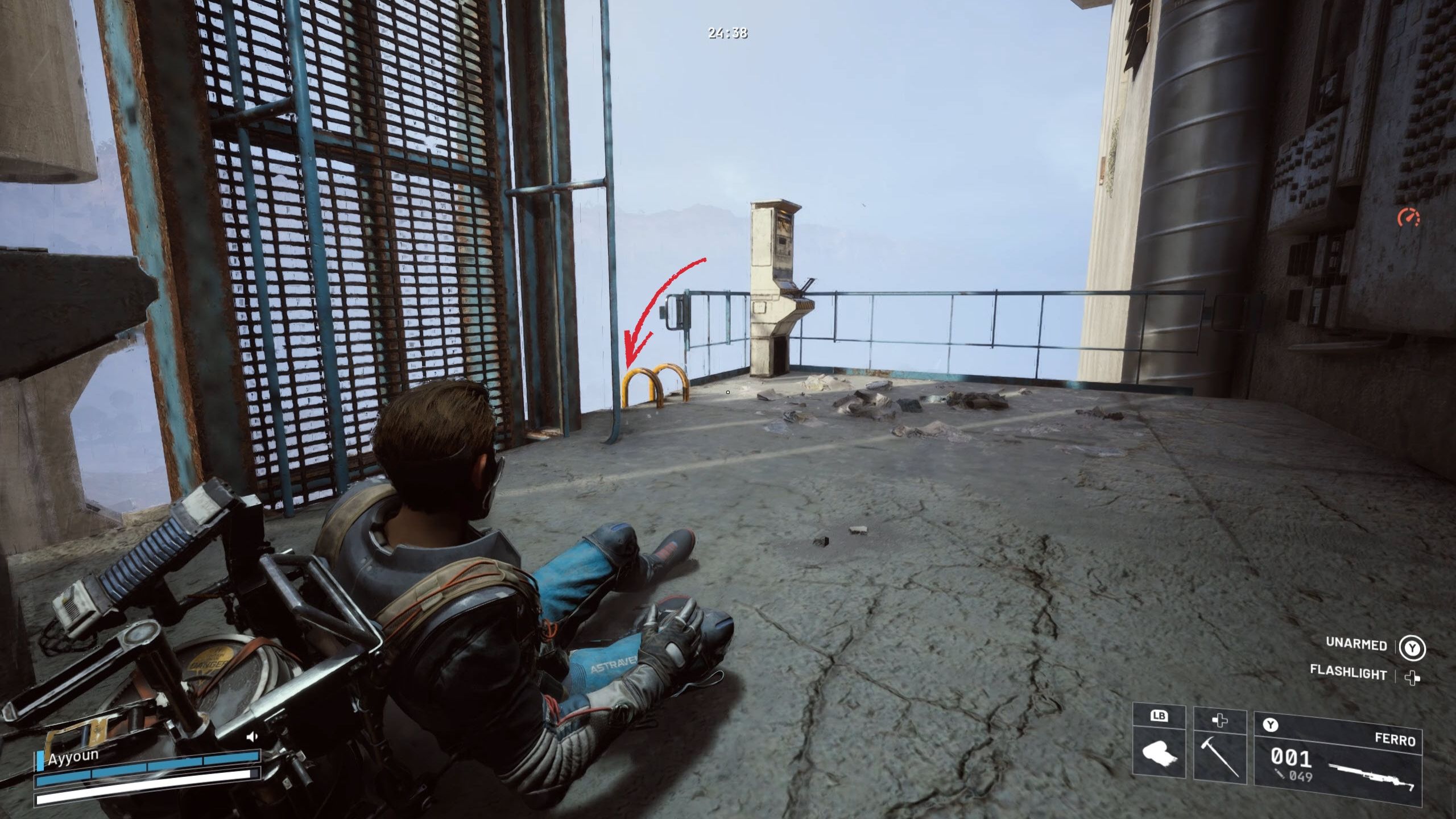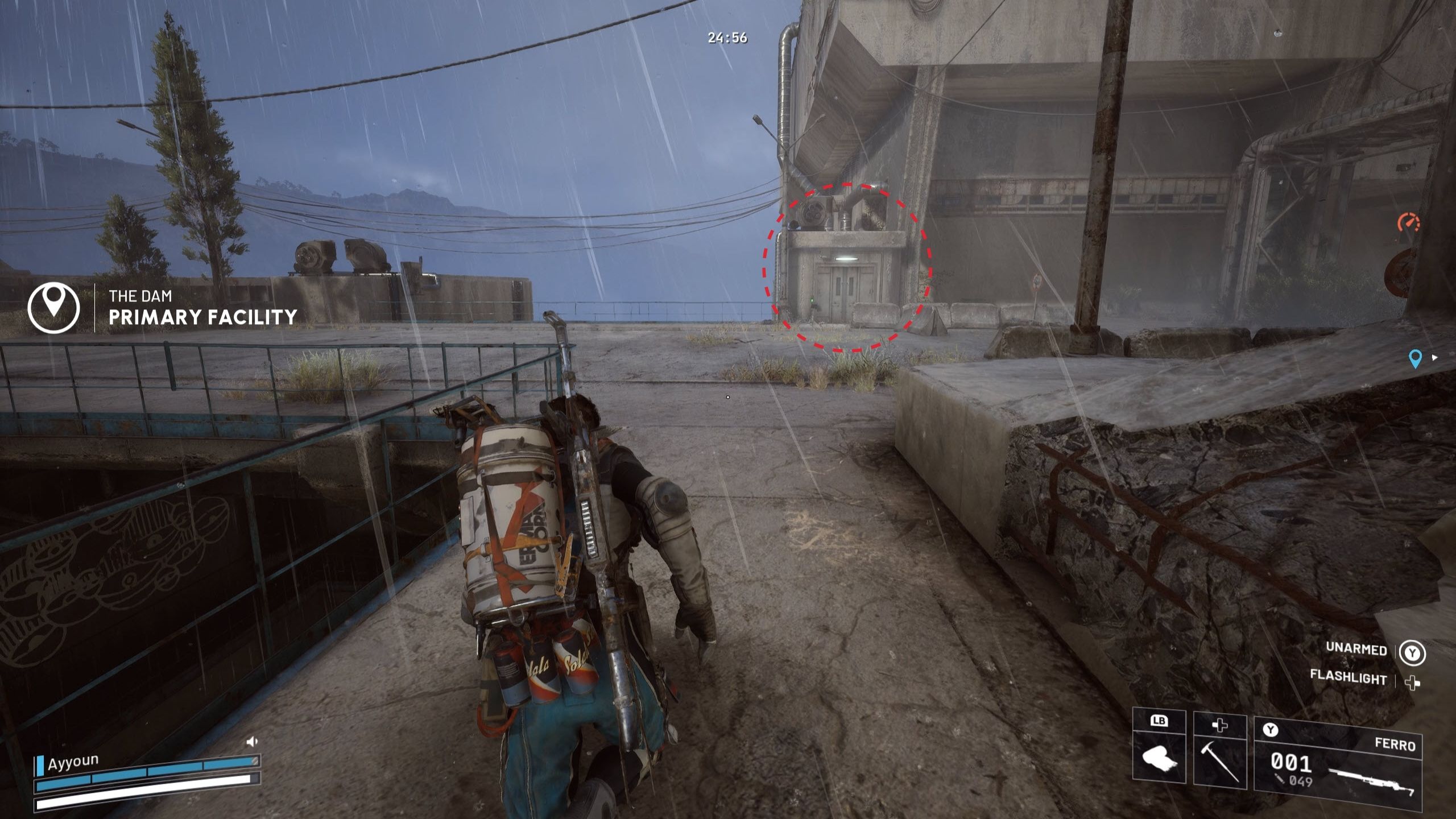 When you’re prepared, put away your weapons and quickly head to the spillways. Start sliding as soon as they curve downwards – this will give you the speed you need to slide all the way to the ground.