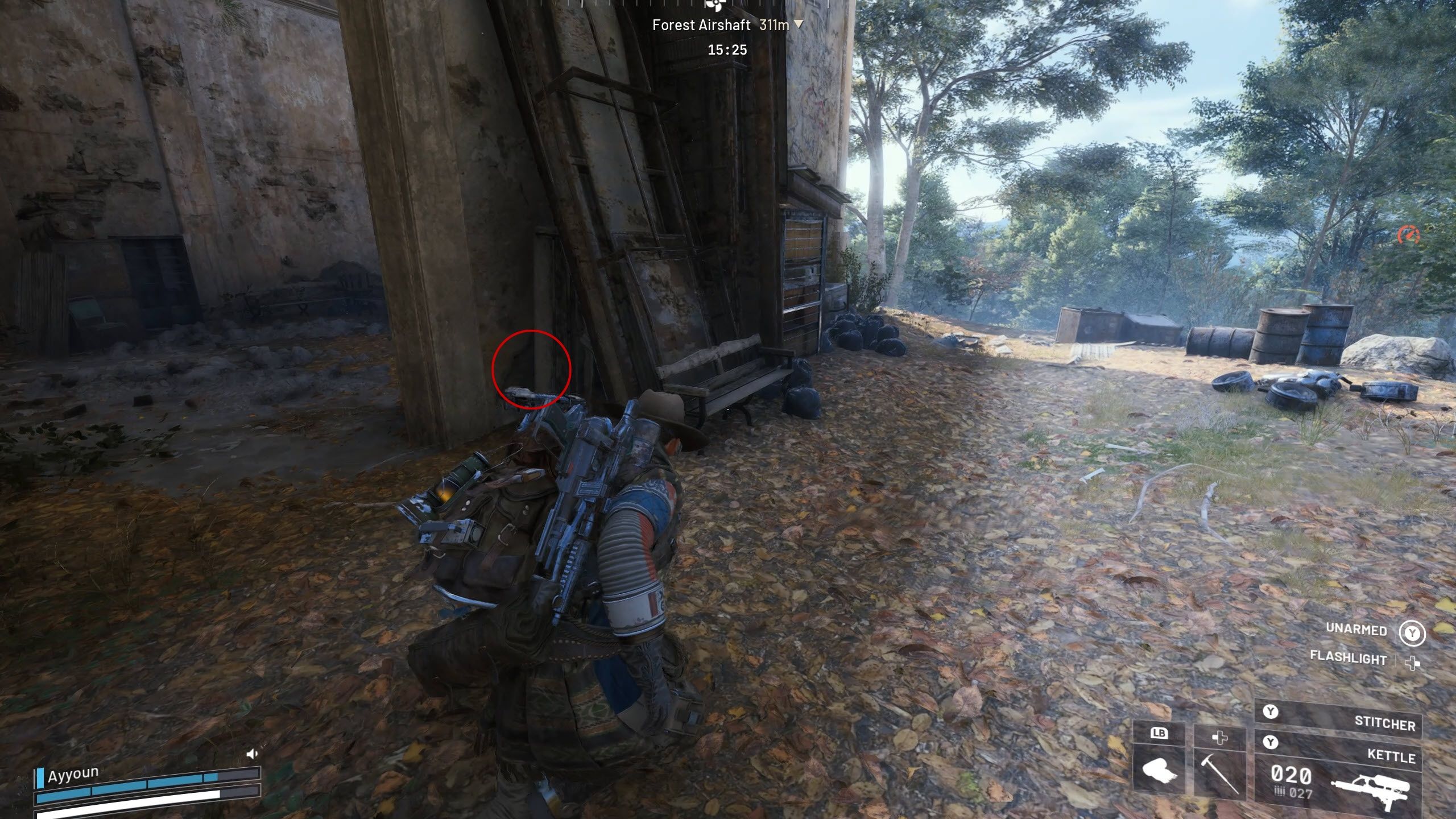 There are two potential locations of the button near the watch tower, one on the overhang and the other atop the tower. You can reach the tower either by taking the zipline or through a long ladder inside Raider’s Refuge. |