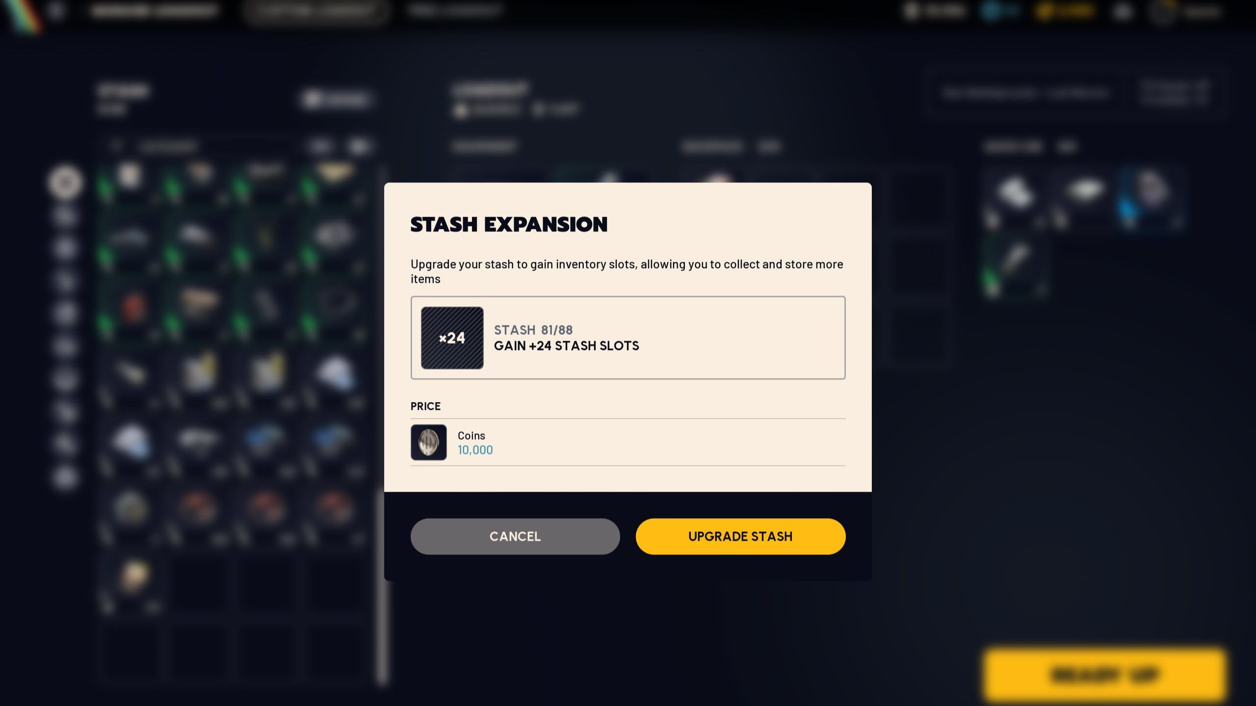- You’ll need to spend coins to get additional slots and upgrade the maximum capacity of your stash.