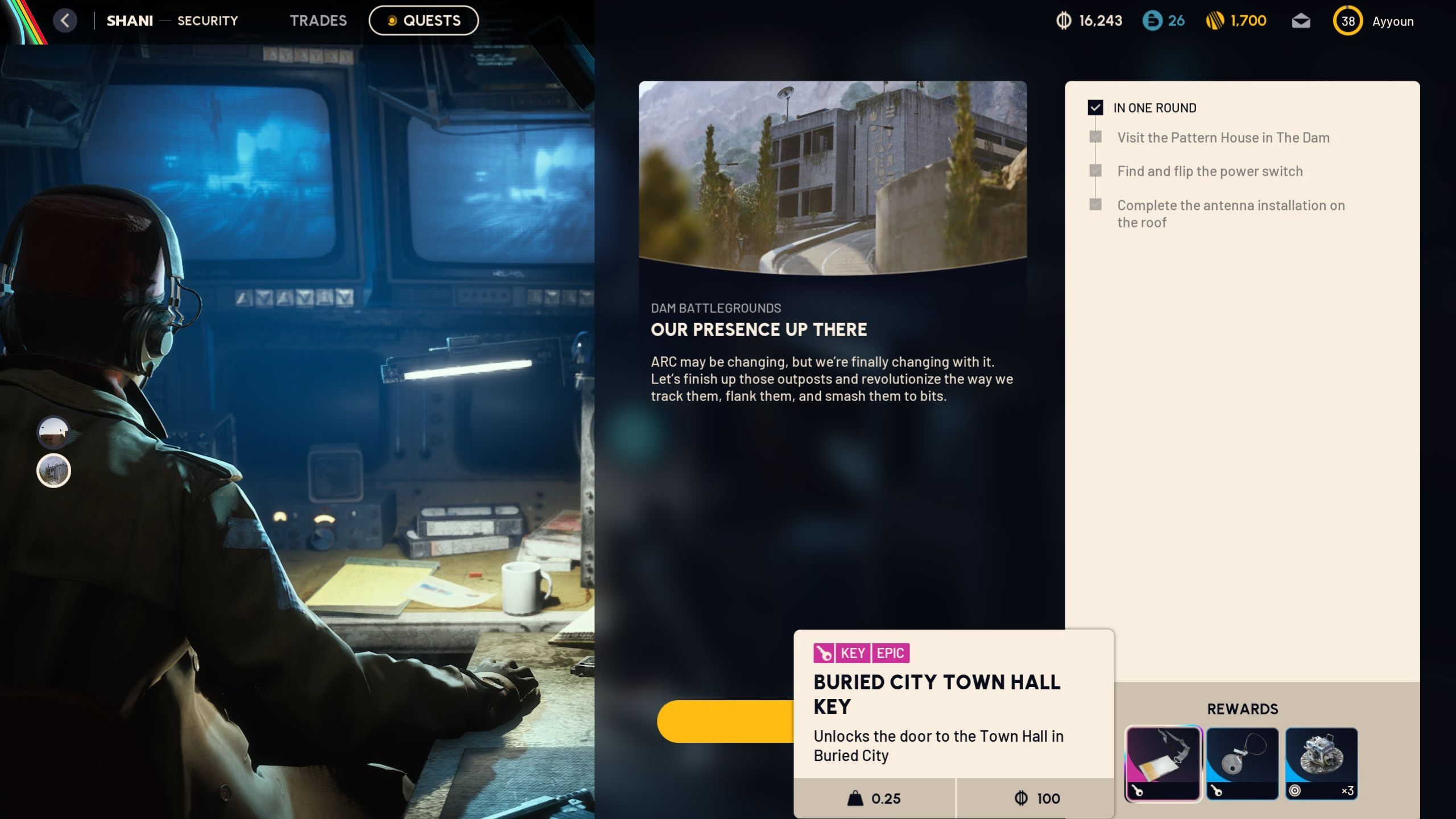 Complete the “Our Presence Up There” quest in ARC Raiders and you’ll get a Buried City Town Hall key, a Raider Hatch key, and three Jolt Mines as rewards.