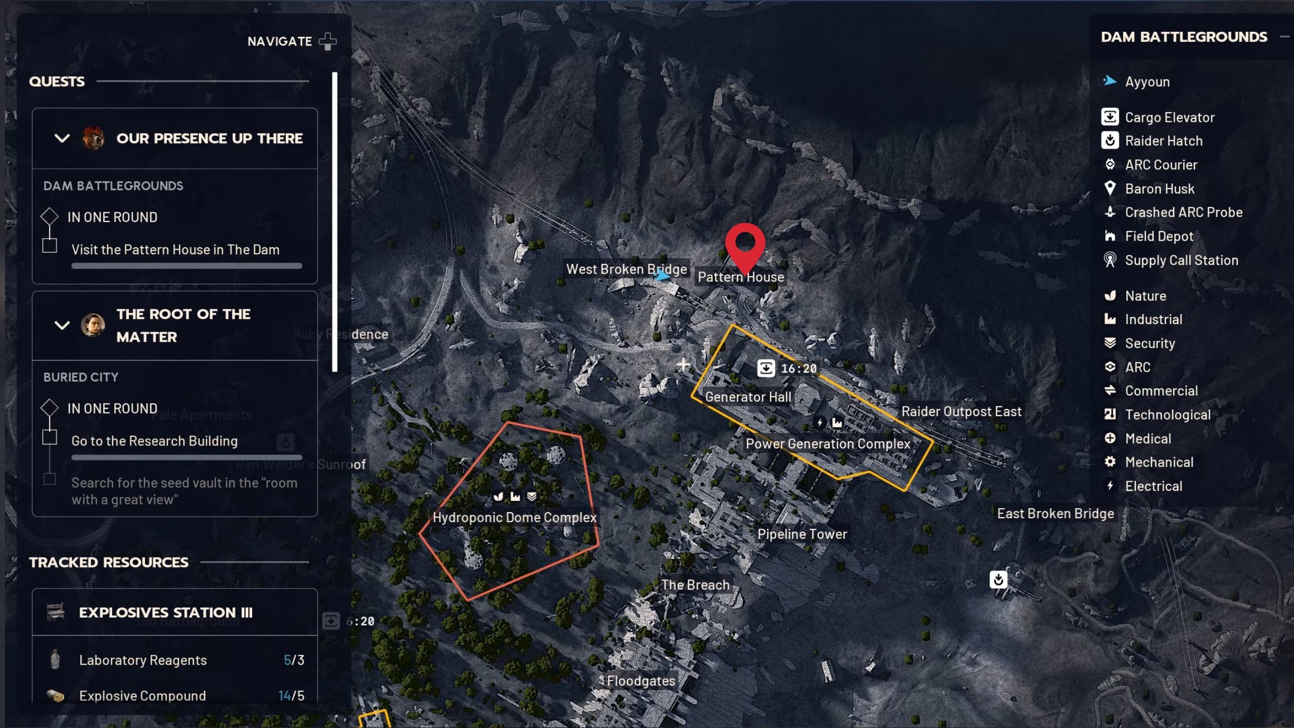 To begin the “Our Presence Up There” quest in ARC Raiders, head to the Pattern House in the far north of the Dam Battlegrounds map. It’s located to the northwest of the Power Generation Complex, and you’ll need to zoom in on the map to see its marker.