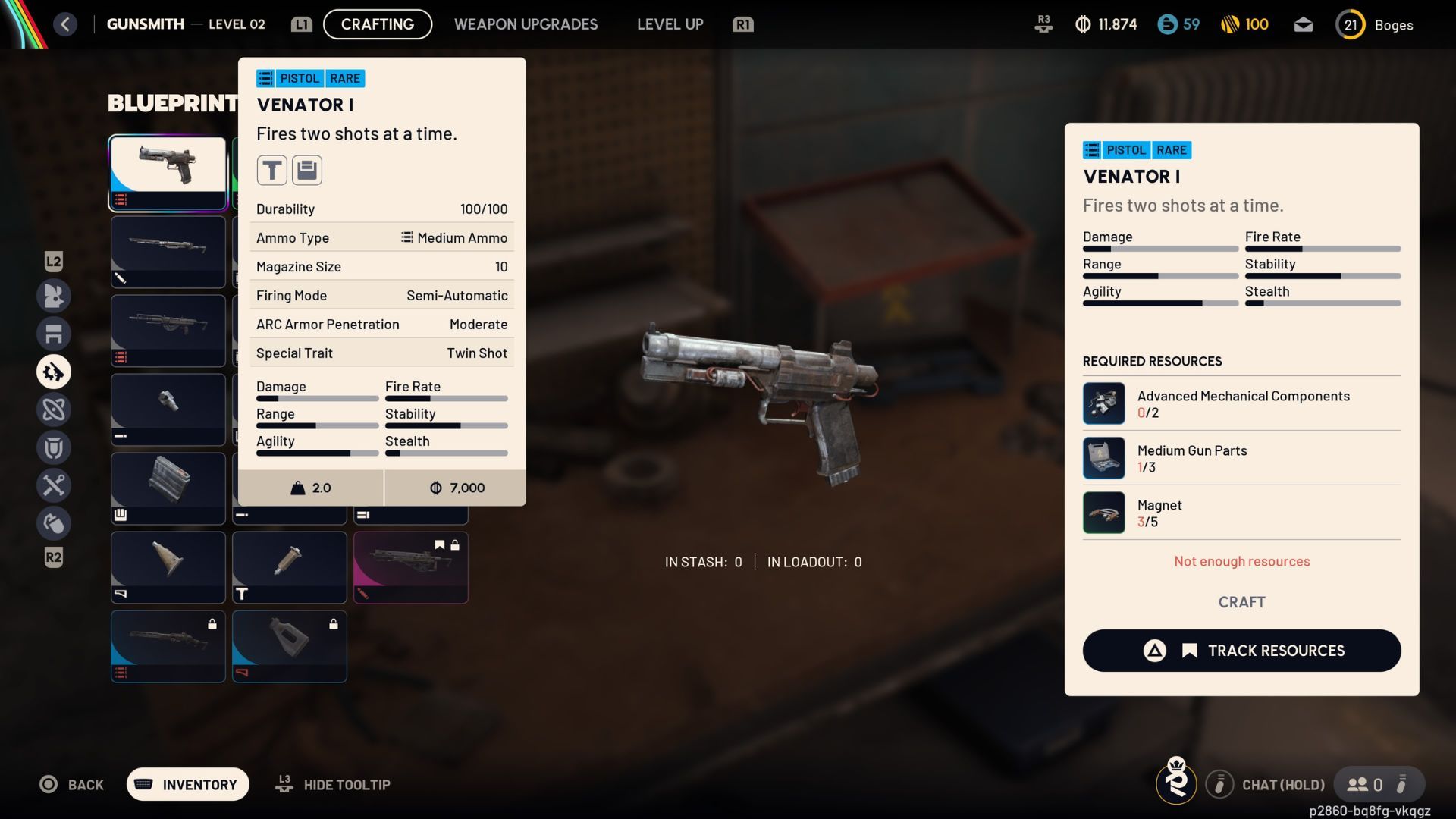 During my visit to the Blue Gate Cellar, I discovered a variety of useful items, including Firm Reel, electrical and mechanical components, sensors, and even some grenades. I also found the blueprint for the Venator I pistol, which lets me build a rare, dual-shot weapon.