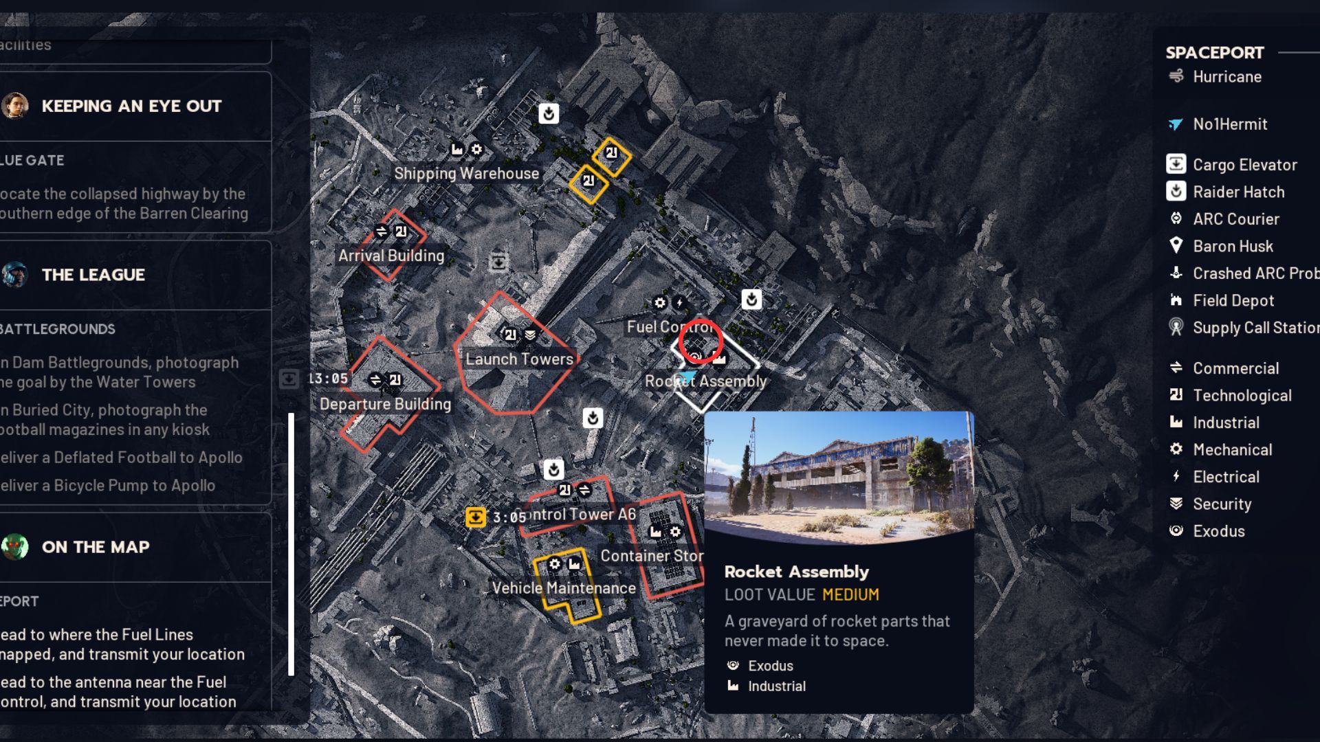 Currently, completing the quest relies heavily on luck – either spawning near the Rocket Assembly or waiting for a game update or for enough players to finish it to reduce competition. Choosing Spaceport, especially with challenging map conditions like Hurricane, might make quest completion easier because the plentiful high-quality loot will likely attract fewer players focused on the quest itself.