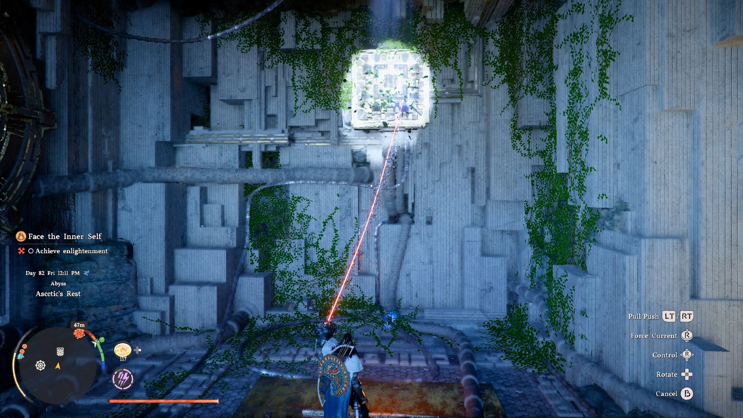 Okay, so I finally figured out the Ascetic’s Rest puzzle in Crimson Desert! All you have to do is use a force palm on that circular part in the middle, and it unlocks! Don’t forget to grab the Abyss Artifact from the gate once it’s open. Then you can continue with the ‘Face the Inner Self’ quest – awesome!