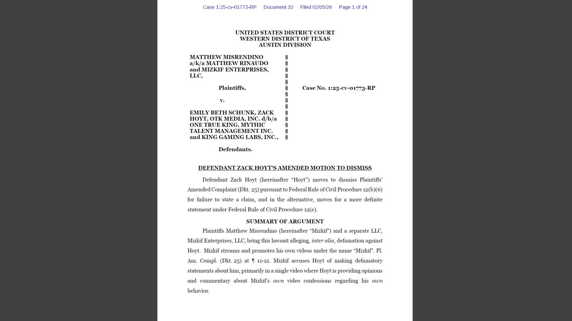 Following accusations made against him, Mizkif sued Emiru and Asmongold in November 2025, seeking damages for defamation and financial losses resulting from his departure from OTK. Asmongold’s legal team has now asked the court in Texas to dismiss the lawsuit entirely, arguing that Mizkif hasn’t presented a valid legal case. They claim that any public statements made about Mizkif or his actions don’t justify a lawsuit. Alternatively, Asmongold’s lawyers suggested that Mizkif could strengthen his case by specifically identifying which comments made by the defendants he believes are actually defamatory.